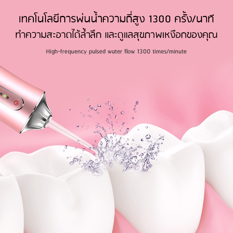 ไหมขัดฟันพลังน้ำ ชาร์จไฟฟ้า เครื่องทำความสะอาดฟัน ดูแลเหงือก [แถม 4 หัวฉีด]