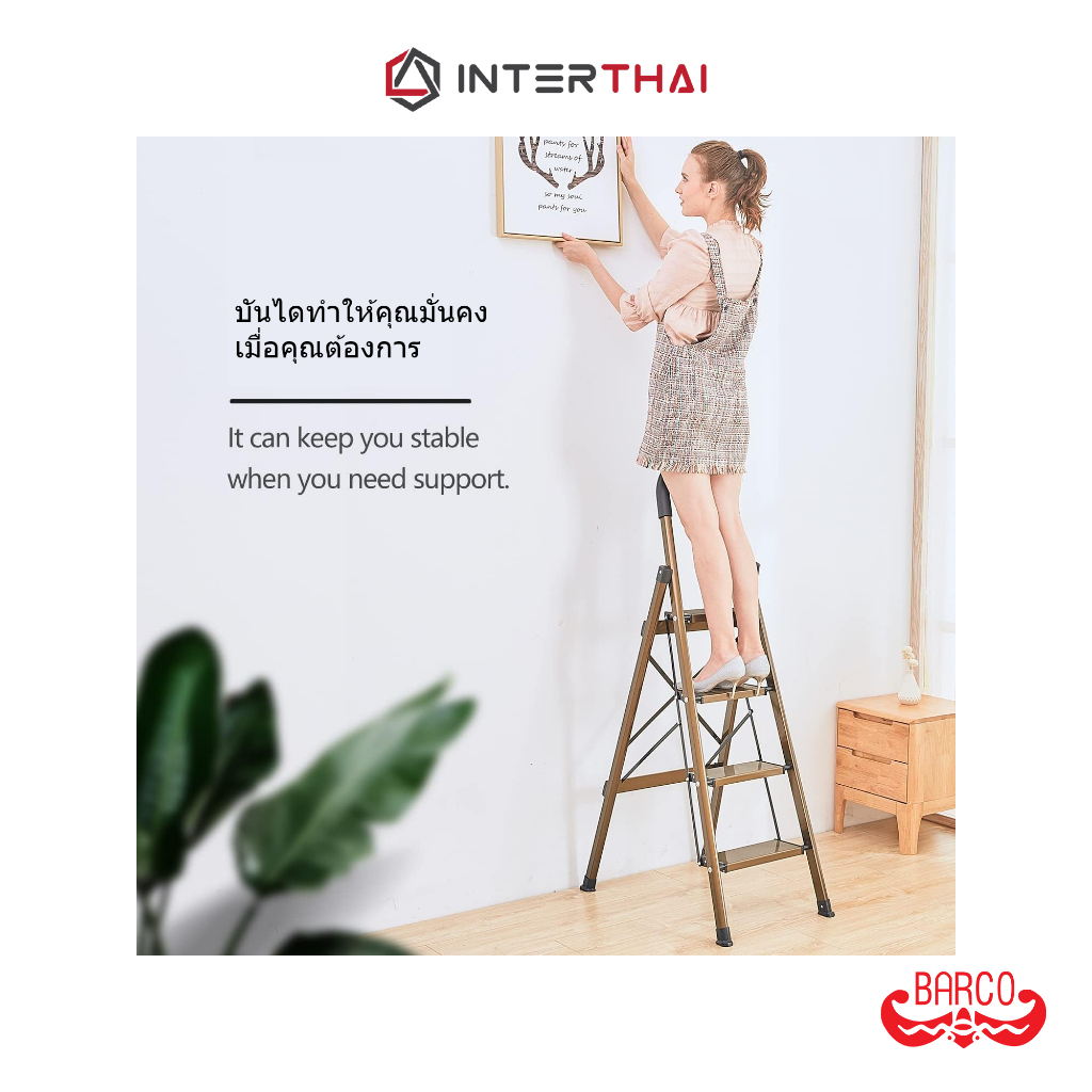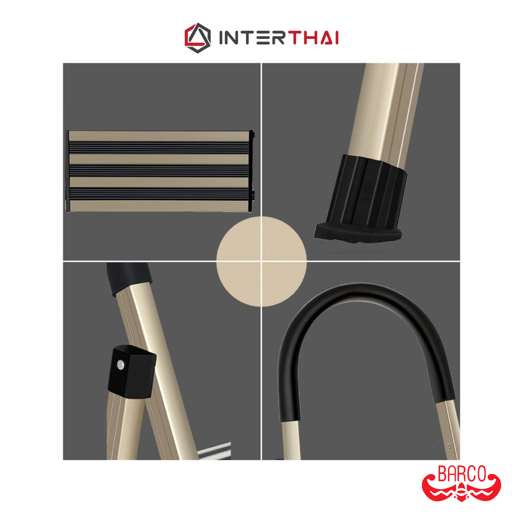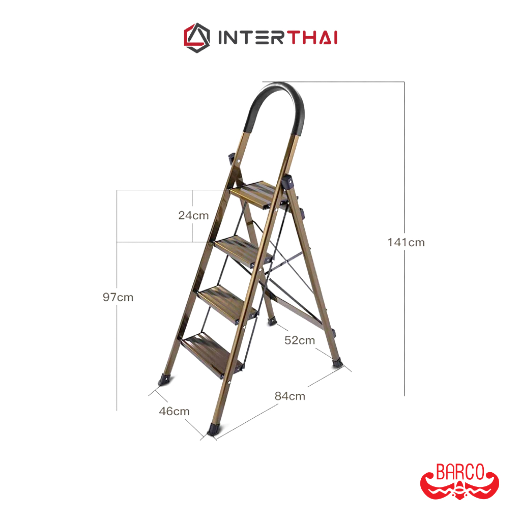 BARCO บันไดอลูมิเนียมมีราวจับ 4 ขั้น สีแชมเปญ 0.97 เมตร รับได้ 150 กิโลกรัม