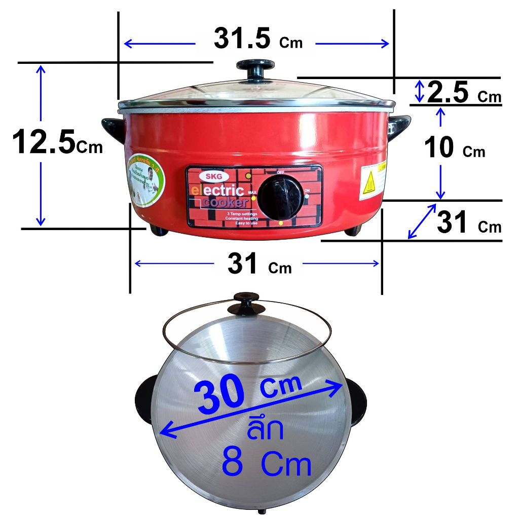 SKG กระทะ ไฟฟ้า อเนกประสงค์ 12นิ้ว 1000w/1300w เลือกรุ่น SK-1881 (สีแดง อลูมิเนียม ฝาใส) SK-1991 (สีแดง เทฟล่อน ฝาทึบ)
