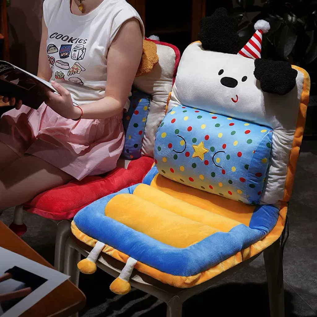 (พร้อมส่งจากไทย) เบาะรองนั่ง พร้อมพิงหลัง หูการ์ตุน มีสายรัดเก้าอี้ เบาะรองหลัง