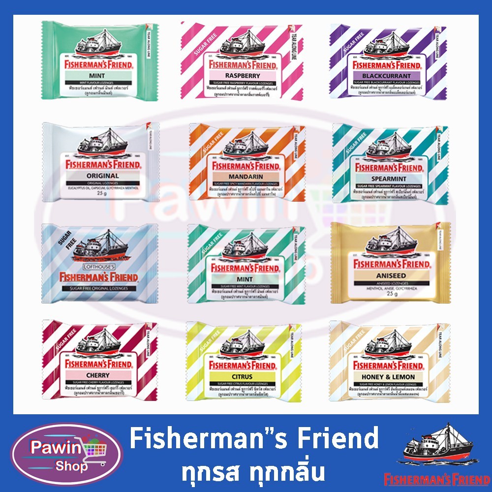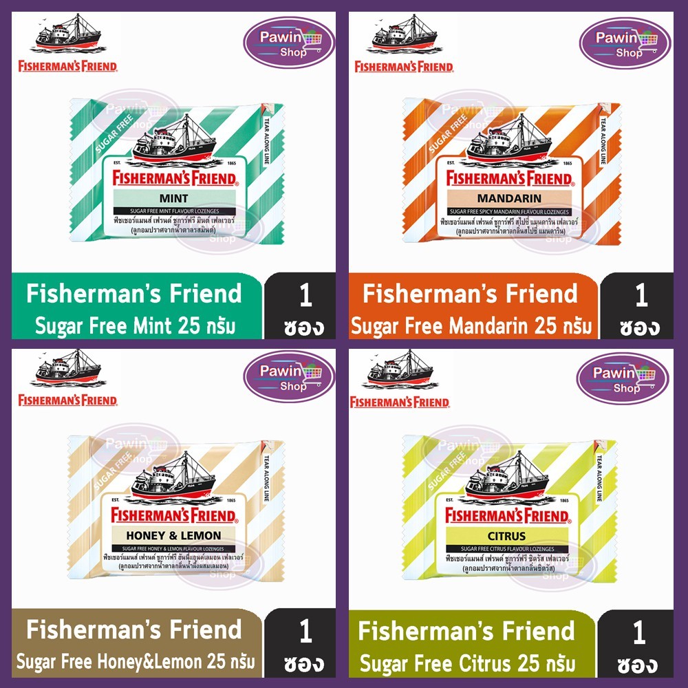 Fisherman's Friend ฟิชเชอร์แมนส์ เฟรนด์ ลูกอมปราศจากน้ำตาล ทุกรสชาติ ขนาด 22-25 กรัม [6 ซอง] BB 11XX Fisherman เลือกได้