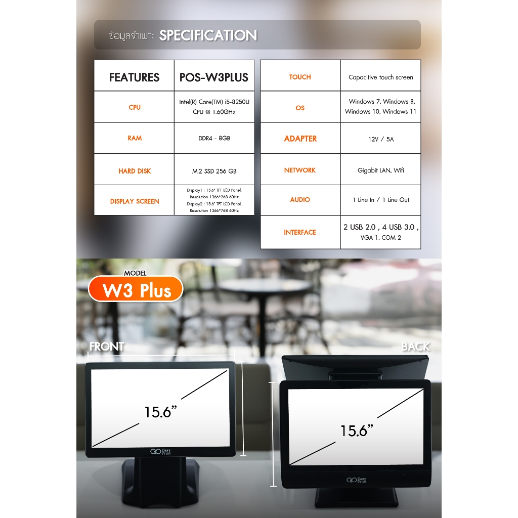 เครื่องขายหน้าร้าน Easyprint AIO ระบบ Windows POS Terminal รุ่น W1/W2/W3/W4/W5 จอสัมผัส ประกัน1ปี