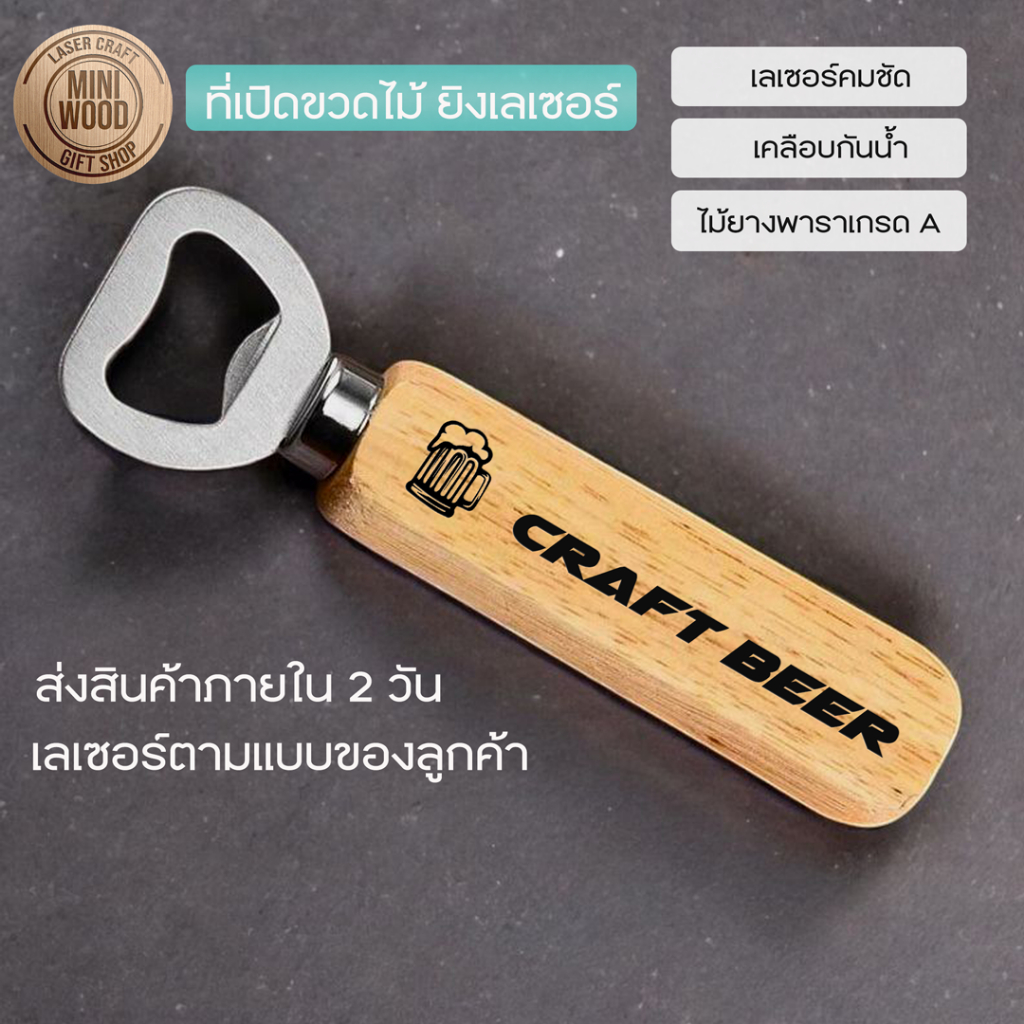 ที่เปิดขวดไม้ยางพารา ยิงลายเลเซอร์ ตามแบบลูกค้า ใส่โลโก้ข้อความได้ เลเซอร์สองด้าน จัดส่งภายใน 2 วัน