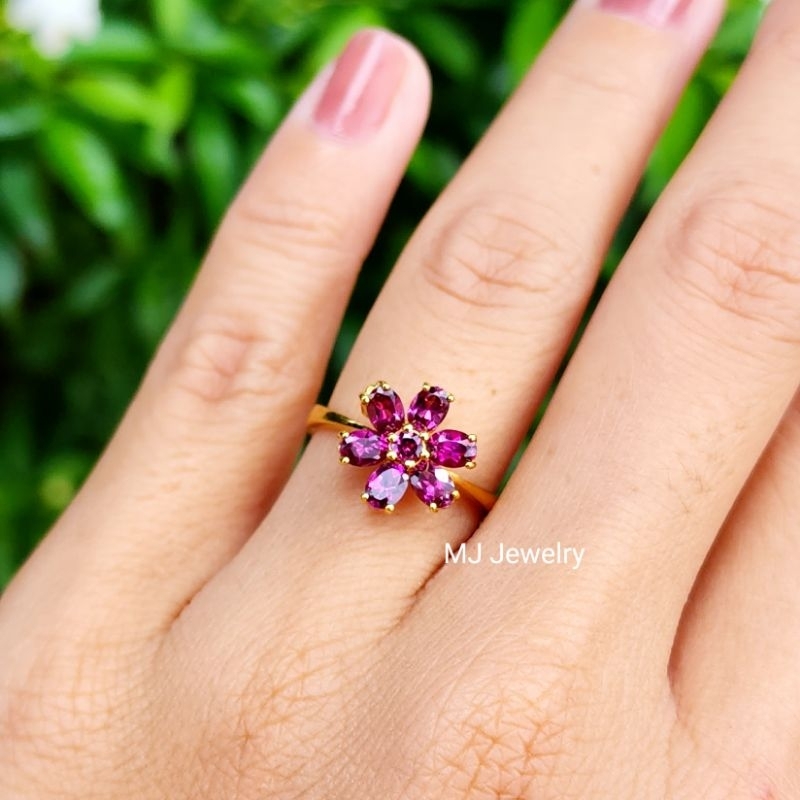 แหวนทรงดอกไม้ พลอยแท้ทุกเม็ด แหวนเงินแท้ 925 จิวเวลรี่จากจันทบุรี