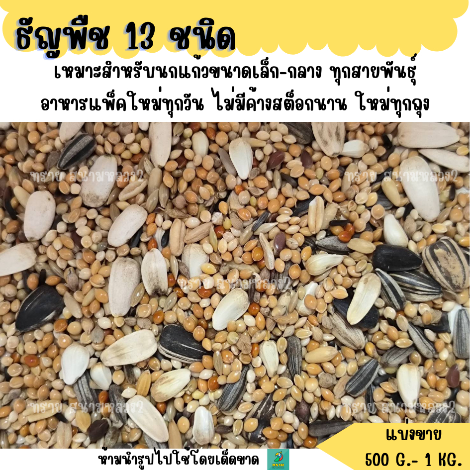 ธัญพืช 13 ชนิด (แบ่งขาย 500 G. - 1 KG.) อาหารนก แก้วขนาดเล็ก-กลางทุกสายพันธุ์