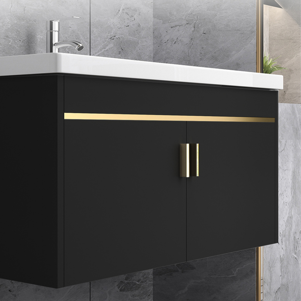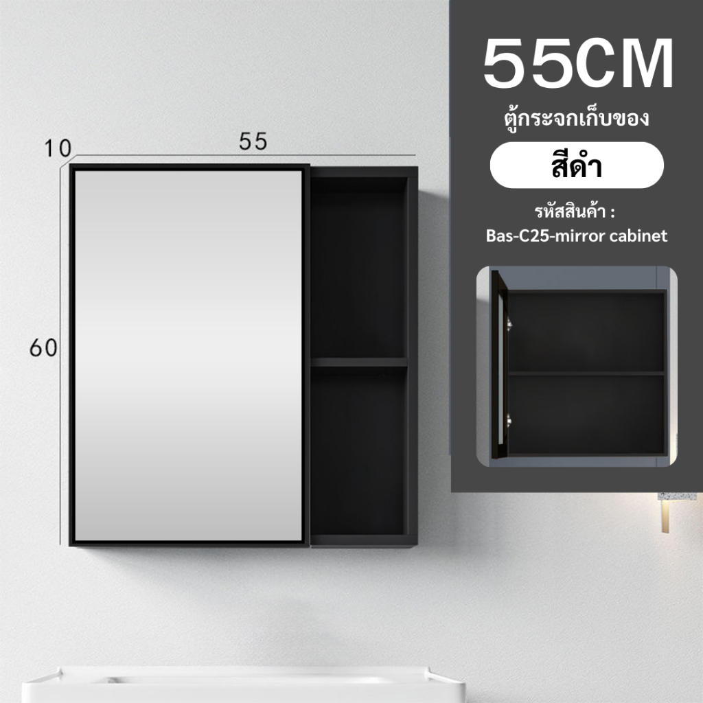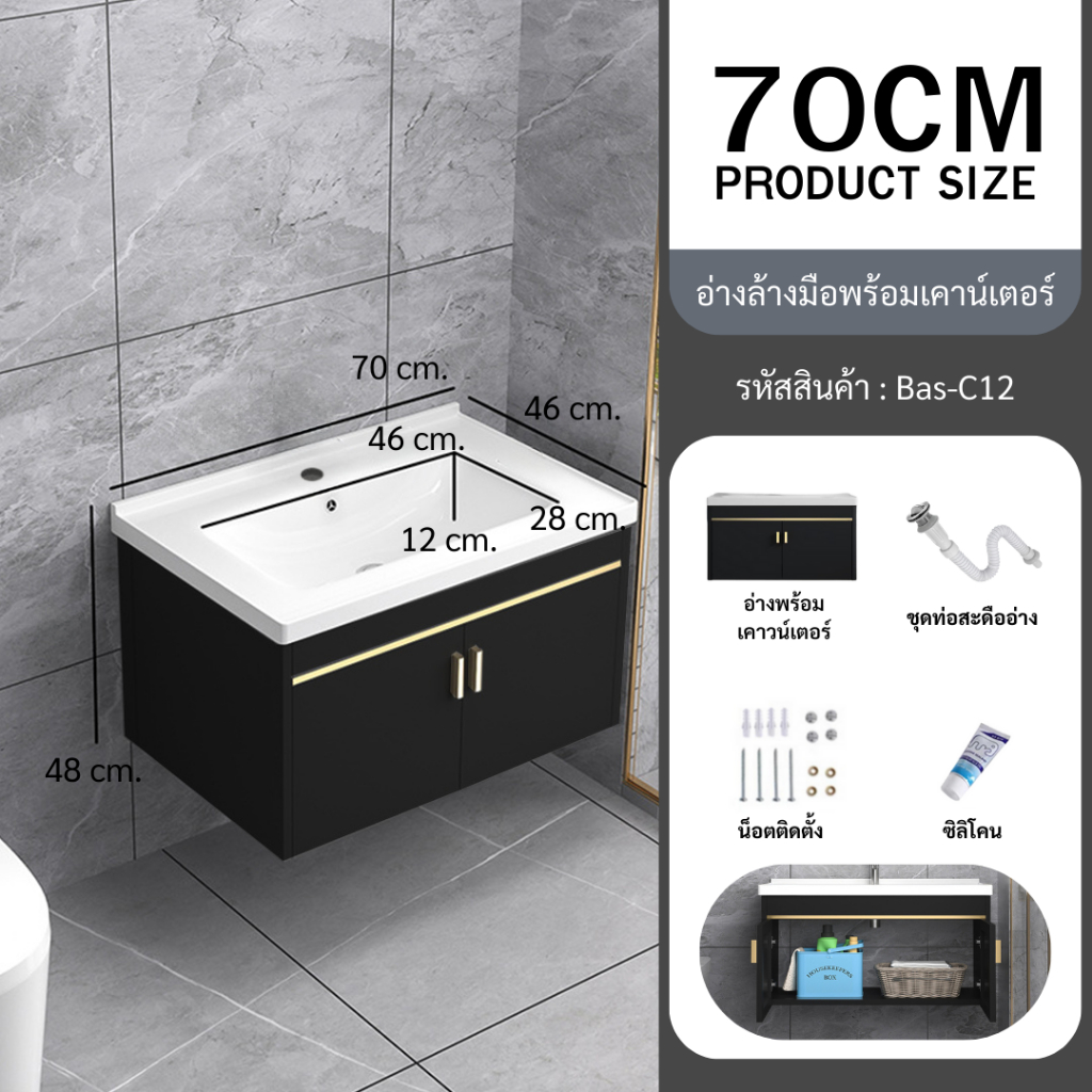 อ่างล้างมือพร้อมเคาน์เตอร์ อ่างล้างหน้า ตู้กระจก ตู้วัสดุไม้เทียม สีดำ มีให้เลือก2ขนาด60และ70ซม. รุ่น Bas-C12/Bas-C13