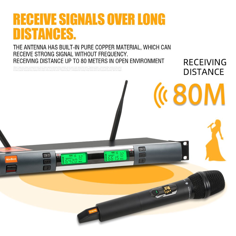 NEW BAXS ไมโครโฟนไร้สาย 2 หน่วย KMC8,UHF ความถี่ปรับได้, ไม่มีการรบกวน ไมค์ ชุด,สำหรับการร้องเพลง, ที่บ้าน, ปาร์ตี้, KTV