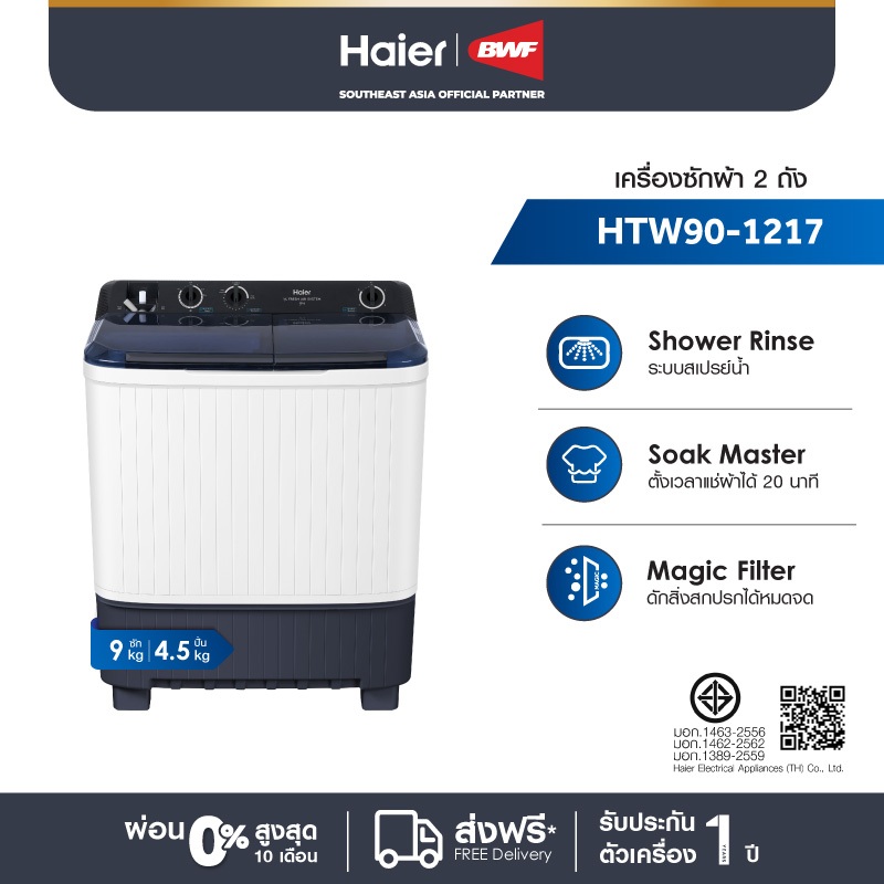 Haier เครื่องซักผ้า 2 ถัง กึ่งอัตโนมัติ ความจุ 9 kg รุ่น HTW90-1217
