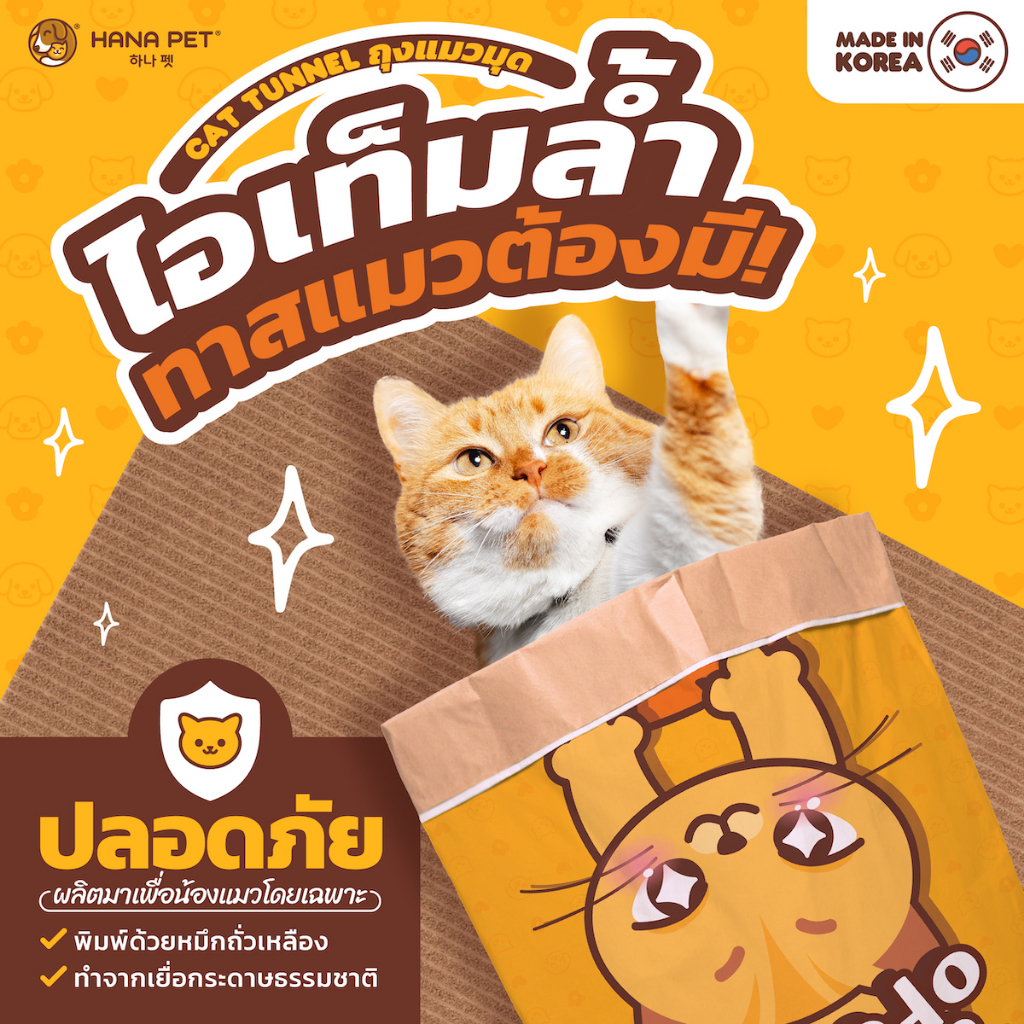 Hana Pet ถุงแมวมุด ของเล่นแมว Cat Tunnel ถุงซ่อนแอบ ทำจากเยื่อกระดาษแท้ พิมพ์หมึก soy ink ปลอดภัย