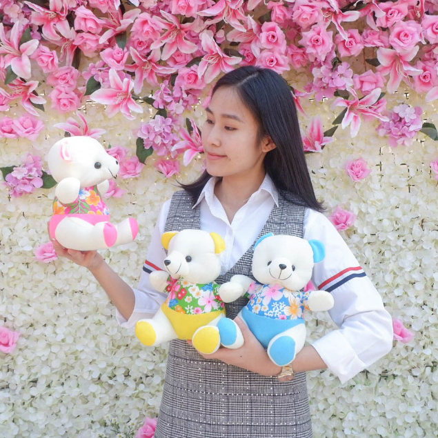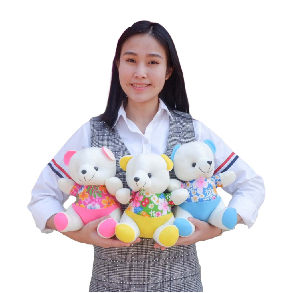 ตุ๊กตา หมีสงกรานต์ 10นิ้ว ทำจากผ้าไร้ขนเนื้อนุ่ม แบบน่ารัก สีสันสดใส ยัดใยสังเคราะห์ทั้งตัว