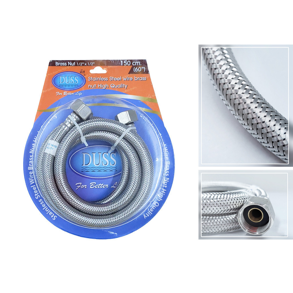 สายน้ำดี สแตนเลส 304 Duss(ดัส) 1/2 นิ้ว (4หุน) สายถักสแตนเลส (35 - 150 ซม.) สายต่อก๊อกน้ำ