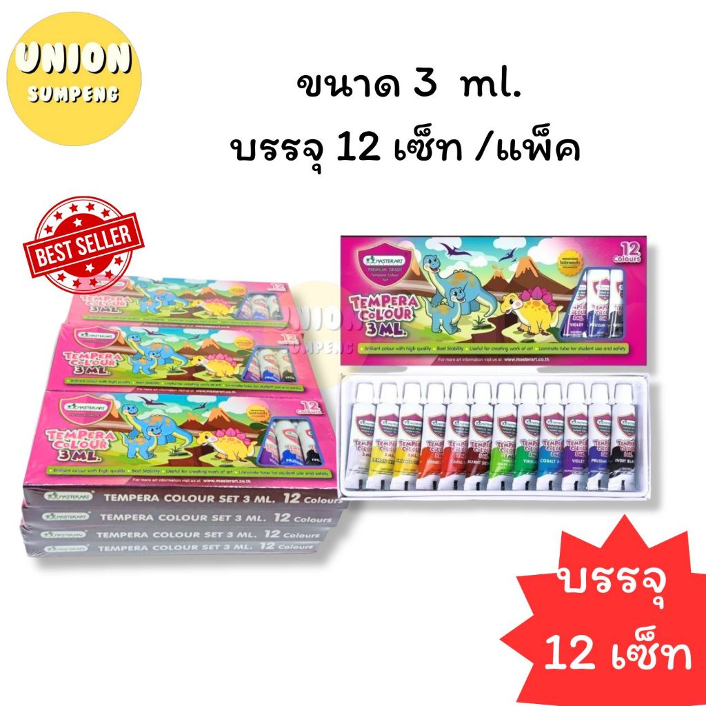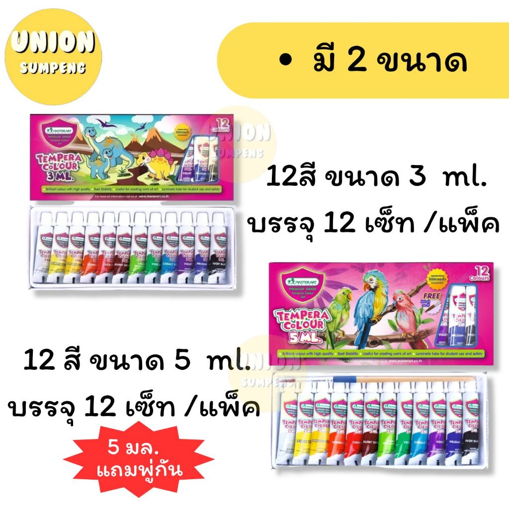 (USP)💢แท้แถมพู่กัน💢(ยกโหล12ชุด) แท้💯 Master Art สีน้ำ 12สี เทมพาร่า ขนาด 3มล. และ 5มล. แถมพู่กัน มาสเตอร์อาร์ต (12ชุด)