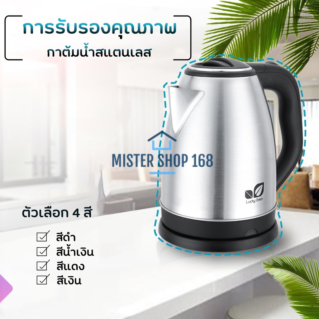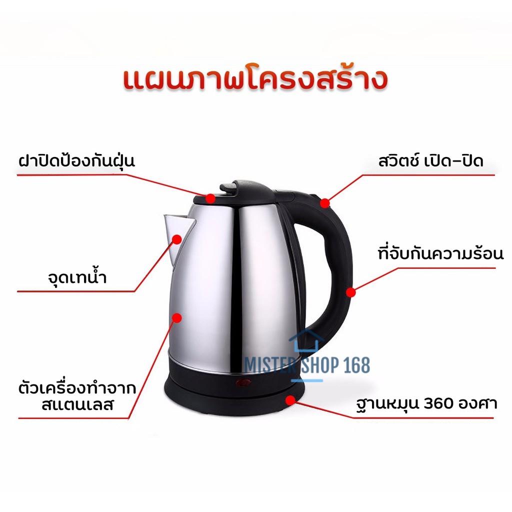 (ลูกค้าใหม่ 1 บาท) กาน้ำร้อนไฟฟ้า ความจุ 2 ลิตร กาสแตนเลส