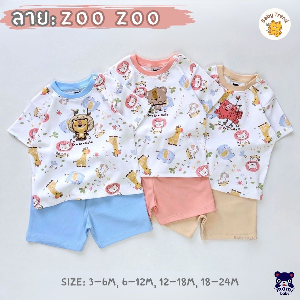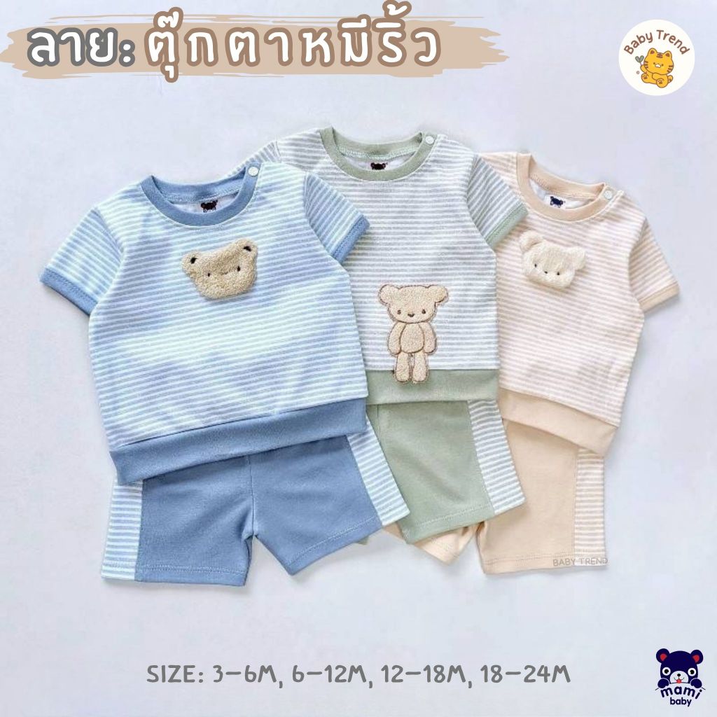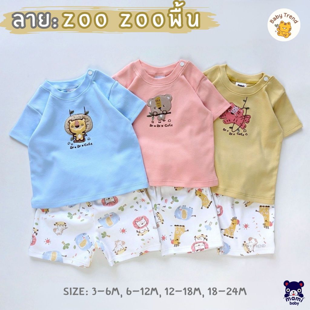 Mami Baby ชุดอยู่บ้านเด็กลายน่ารัก เสื้อยืด+กางเกงขาสั้น กระดุมบ่า ไซส์ 3-24 เดือน (1 ชุด) | Babytrend