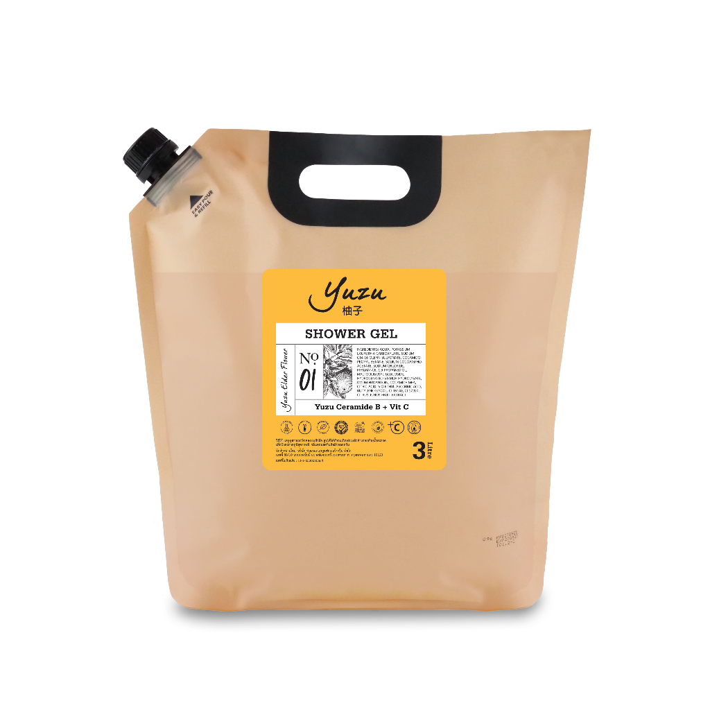 เจลอาบน้ำ Yuzu Elder Flower แกลลอนรีฟิล 3 ลิตร มีสารสกัด Yuzu ceranide B + Vit C ช่วยผิวกระจ่างใส หอมกลิ่นส้มยูสุ
