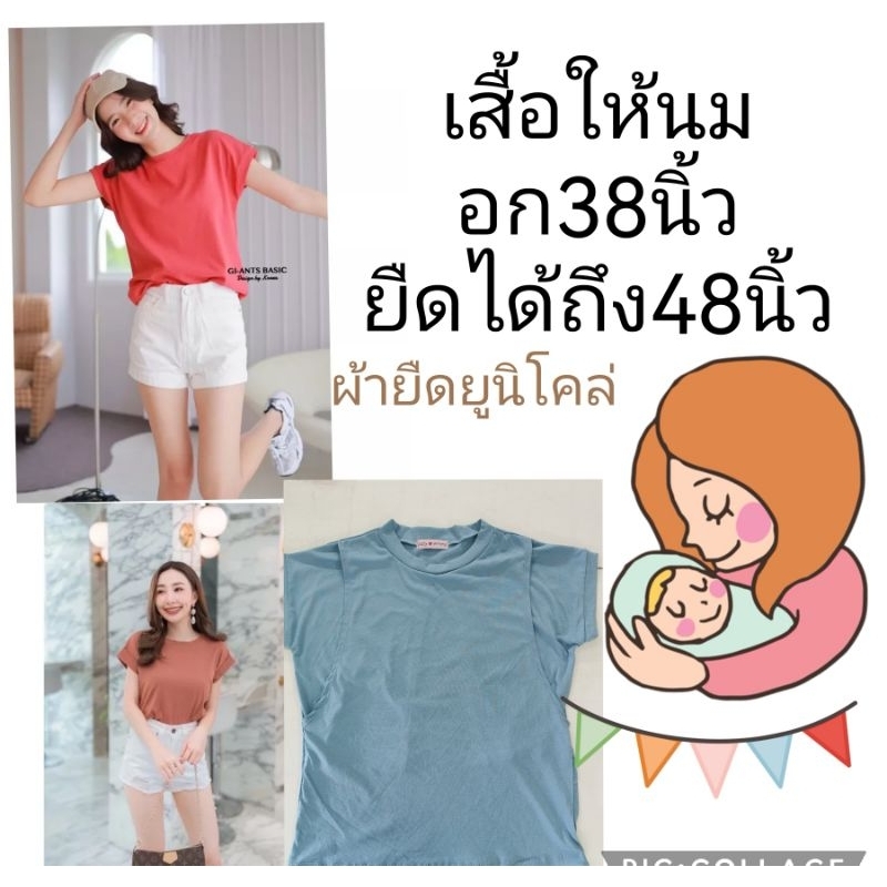 เสื้อให้นมผ้ายูนิโคลทรงแขนในตัว🔥เติมสีใหม่ เนื้อผ้าร่องเล็กละเอียด อก38-48นิ้วผ้ายูนิโคล่ยืดหยุ่นได้เยอะ