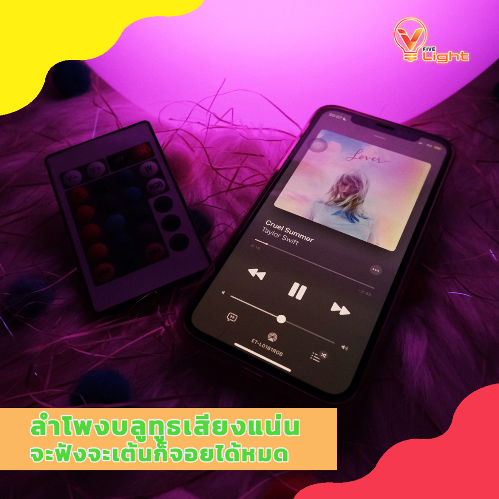 โคมไฟ Bluetooth V FIVE LIGHT ไฟปาร์ตี้แอลอีดี BULB UFO รุ่น เดโม่ (DEMO) 48W
