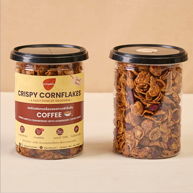 กู้ดนัทส์ คอฟฟี่คอร์นเฟลก คอร์นเฟลกเคลือบซอสกาแฟ หอมกาแฟ กรอบ อร่อยเข้มข้นที่สุด 160กรัม Coffee Conflakes | Goodnutsbkk