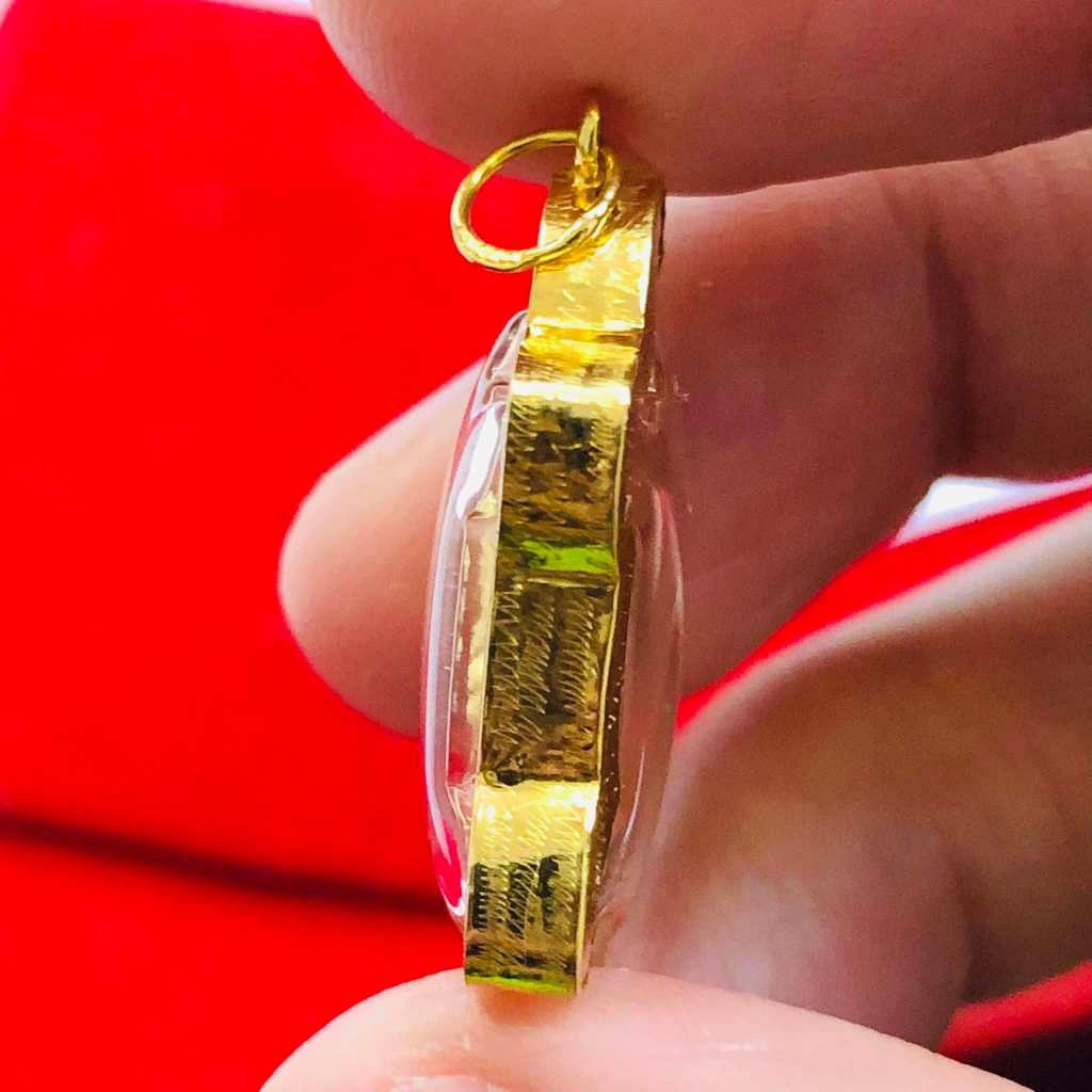 จี้หลวงปู่หลิว วัดไร่แตงทอง (สำหรับสร้อย 2สลึง) เลี่ยมทองคำแท้75 (กันน้ำ,มีใบรับประกัน)
