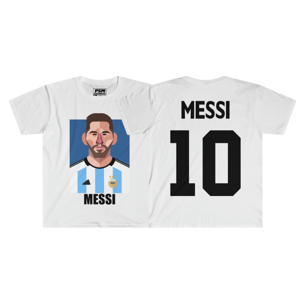 PSM เสื้อยืดลายนักฟุตบอล ลาย L.Messi ชุดฟุตบอลทีมชาติอาร์เจนติน่า ฟุตบอลโลก 2022