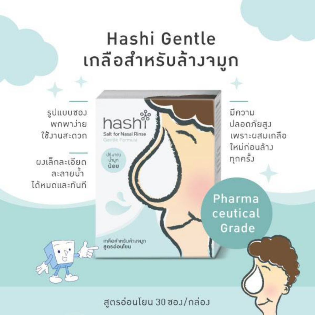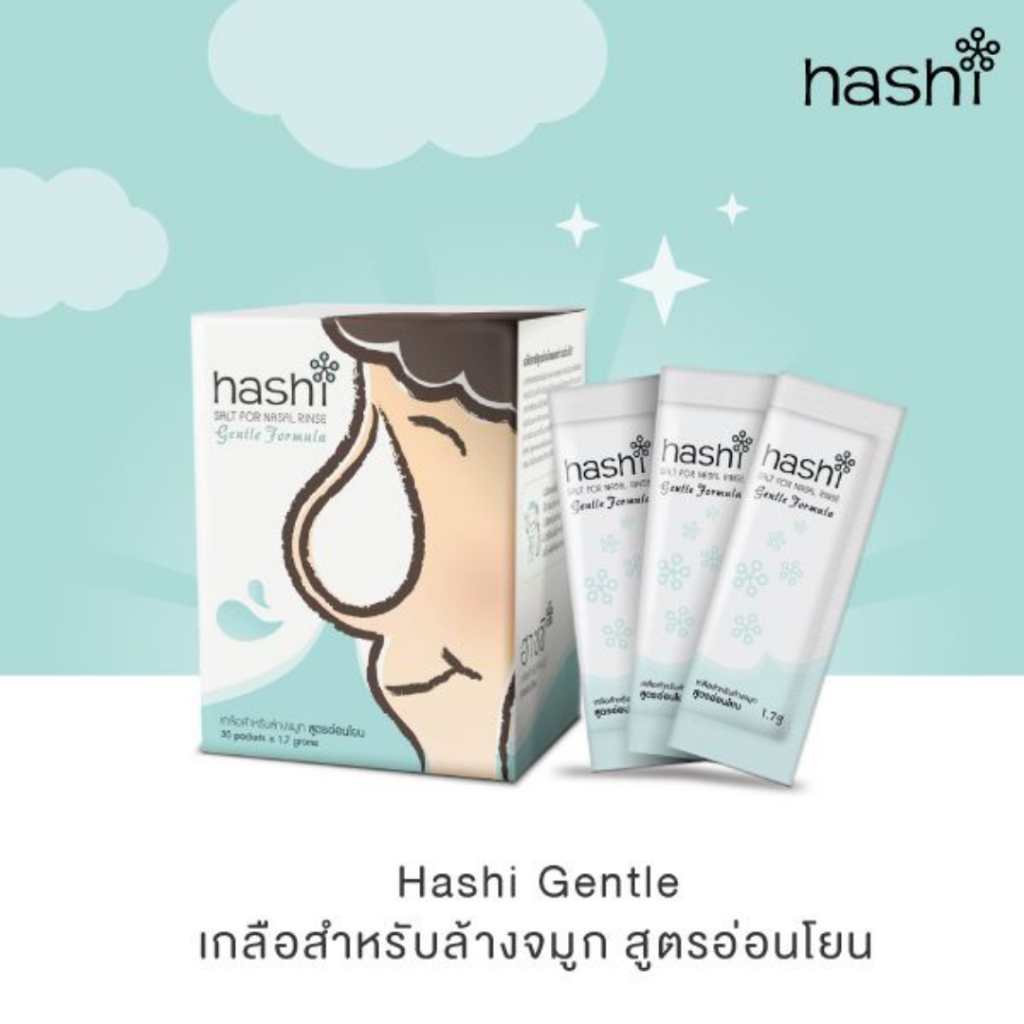 Hashi Refill Salt เกลือฮาชชิ สำหรับล้างจมูก สูตรอ่อนโยน(สีเขียว) จำนวน 1 กล่อง บรรจุ 30 ซอง สำหรับเด็ก 2 ปีขึ้นไป