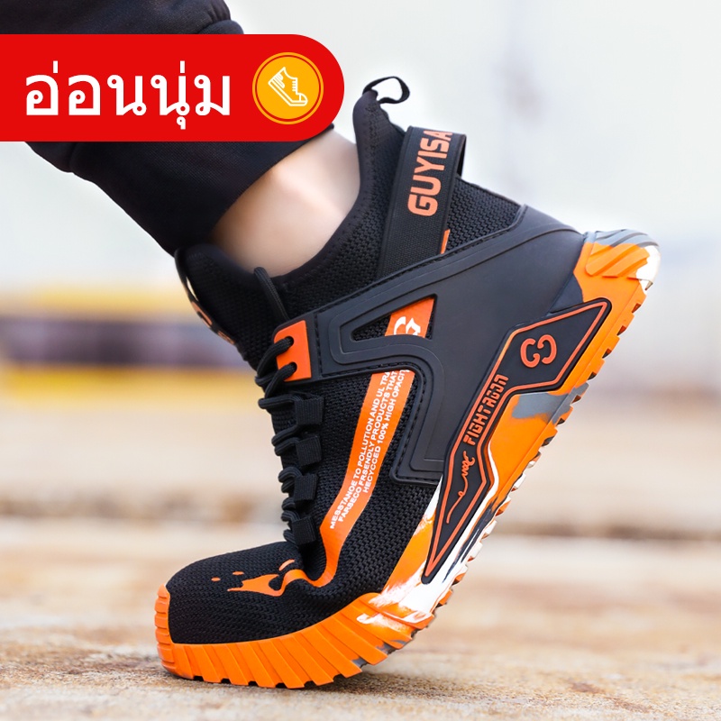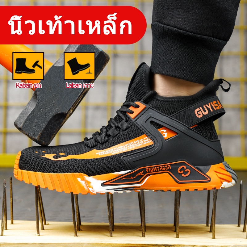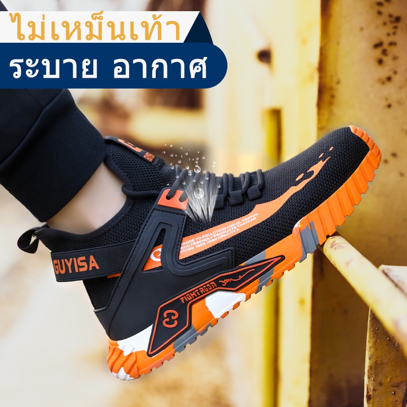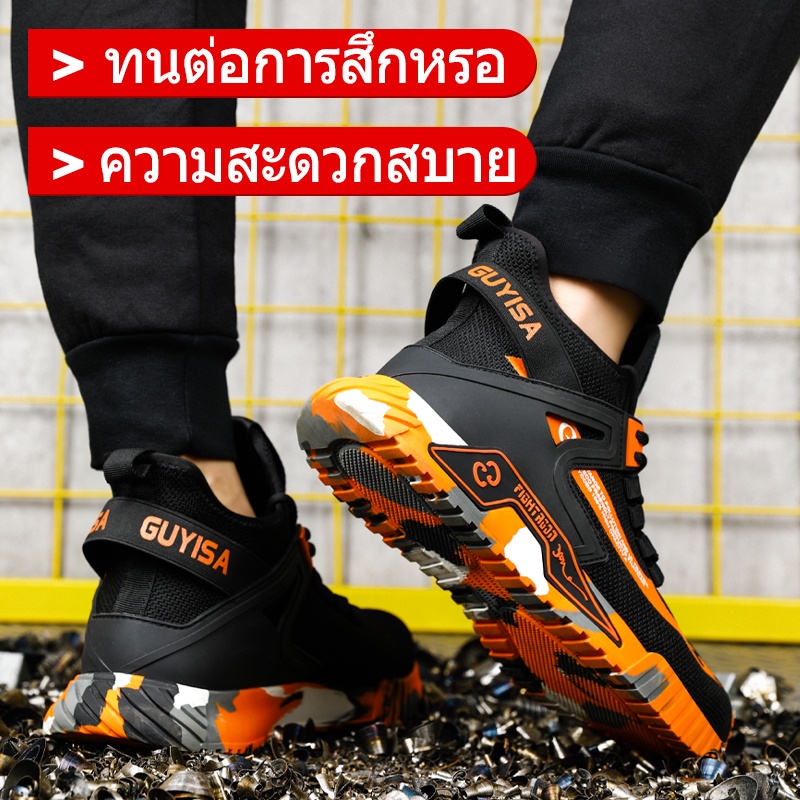 Guyisa รองเท้าเซฟตี้ผู้ชาย ฝาเหล็ก ป้องกันการทุบ ป้องกันการเจาะ ระบายอากาศ สีส้ม 0296RE CN39-44