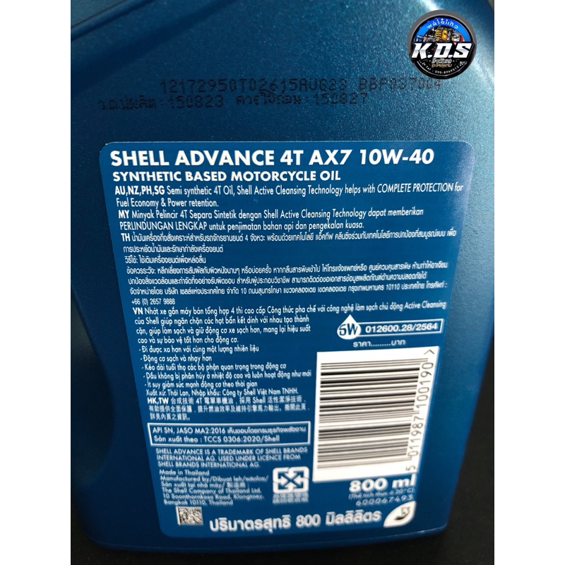 เชลล์ แอดวานซ์ เอ เอ็กซ์7 รุ่น SAE10W-40 800ml