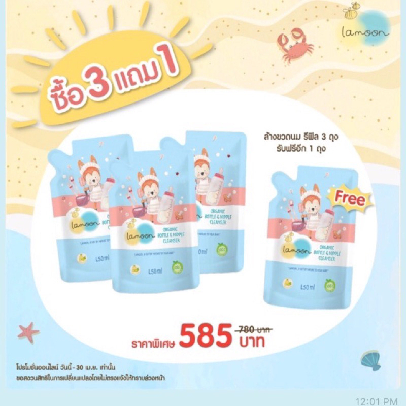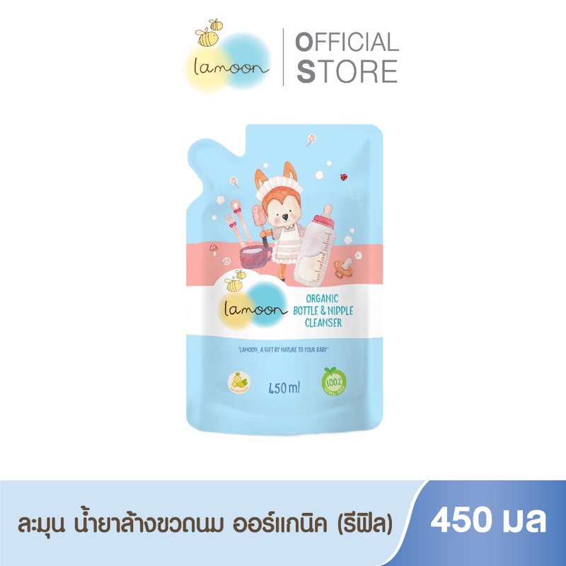 3 แถม 1 น้ำยาล้างขวดนมละมุน LAMOON ขนาด 450 ml รวมได้ 4 ถุง