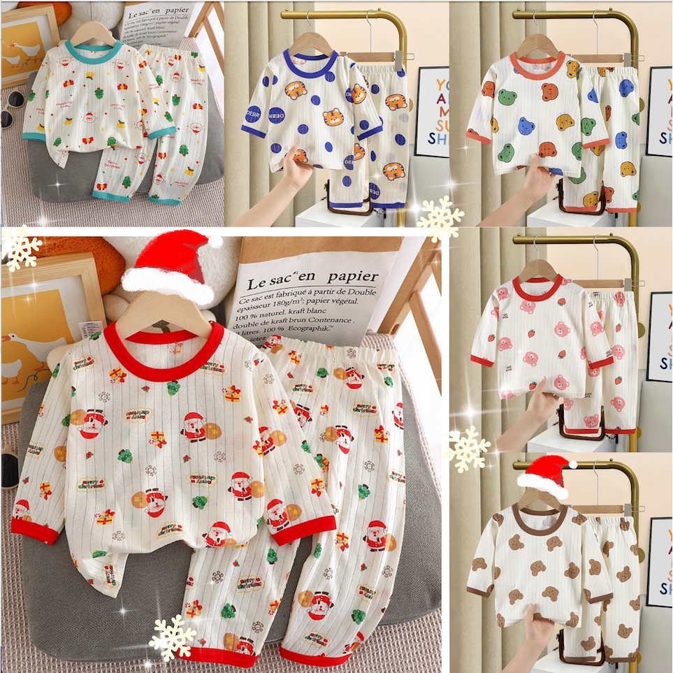 ชุดนอนแขนยาวเด็ก เซต 2 ชิ้น เสื้อ+กางเกงขายาว ผ้าคอตตอน100% นุ่มใส่สบาย size 3เดือน--8ปี PKY789