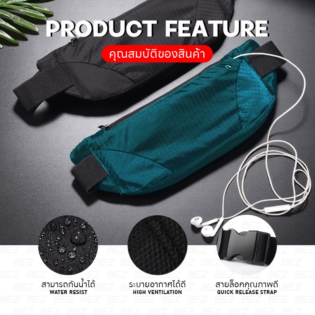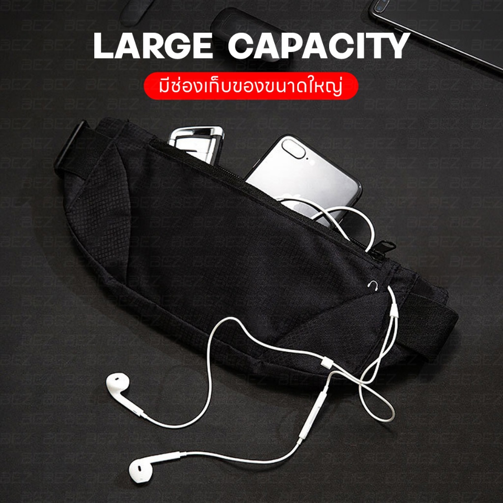 BEZ กระเป๋าวิ่งคาดเอว กระเป๋าวิ่ง ออกกำลังกาย วัสดุผ้าอย่างดี กันน้ำ มีช่องรูหูฟัง ใส่โทรศัพท์