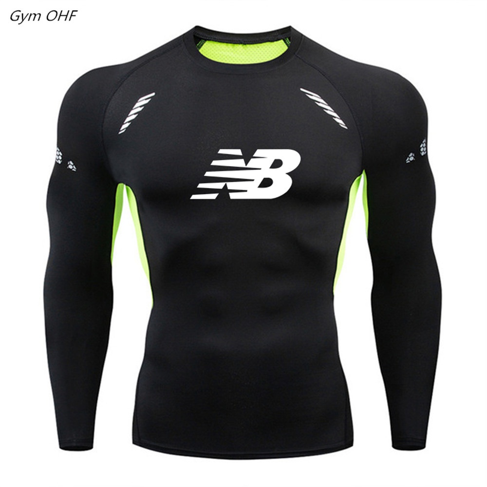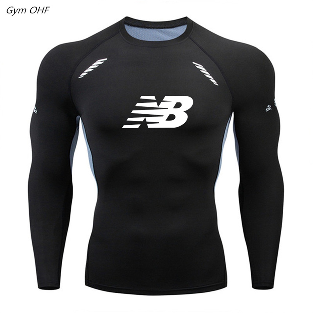 เสื้อยืดแขนยาว ระบายอากาศได้ดี รัดรูป เหมาะกับใส่เข้ายิม ฟิตเนส สําหรับผู้ชาย