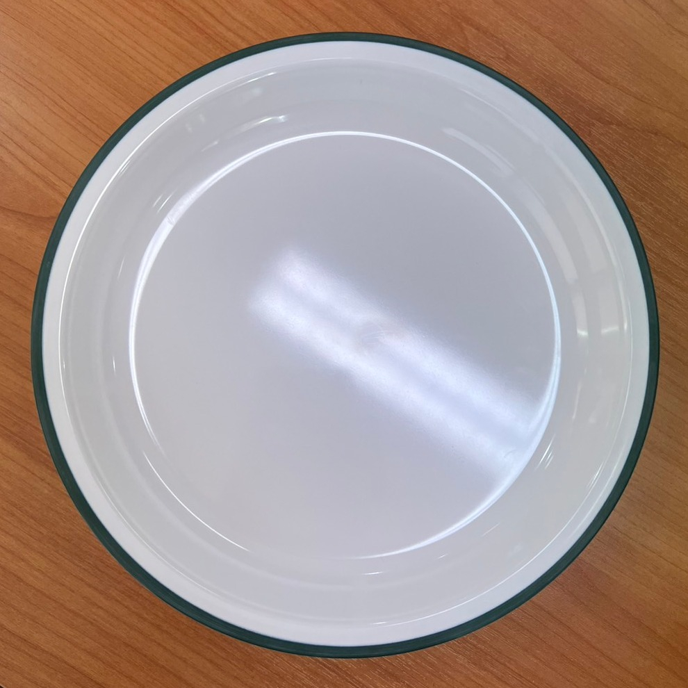 Figure จานเมลามีน จานเมลามีนขอบน้ำเงิน จานวินเทจเมลามีนขอบน้ำเงินเลียนแบบจานสังกะสีเคลือบ ขนาด 9 นิ้ว รุ่นเตี้ย P515-9