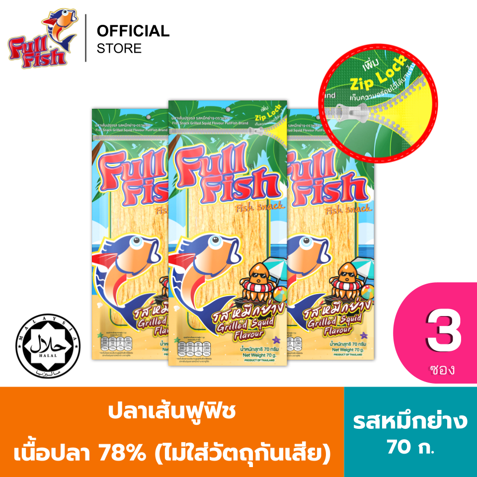 (แพ็ค 3) FullFish ปลาเส้นฟูฟิช 70 กรัม มีให้เลือก 5 รสชาติ (รสไก่ย่าง, รสบารบีคิว, รสปูอัด, รสเผ็ดศรีราชา, รสหมึกย่าง)