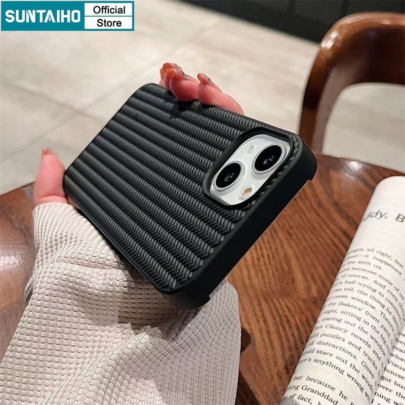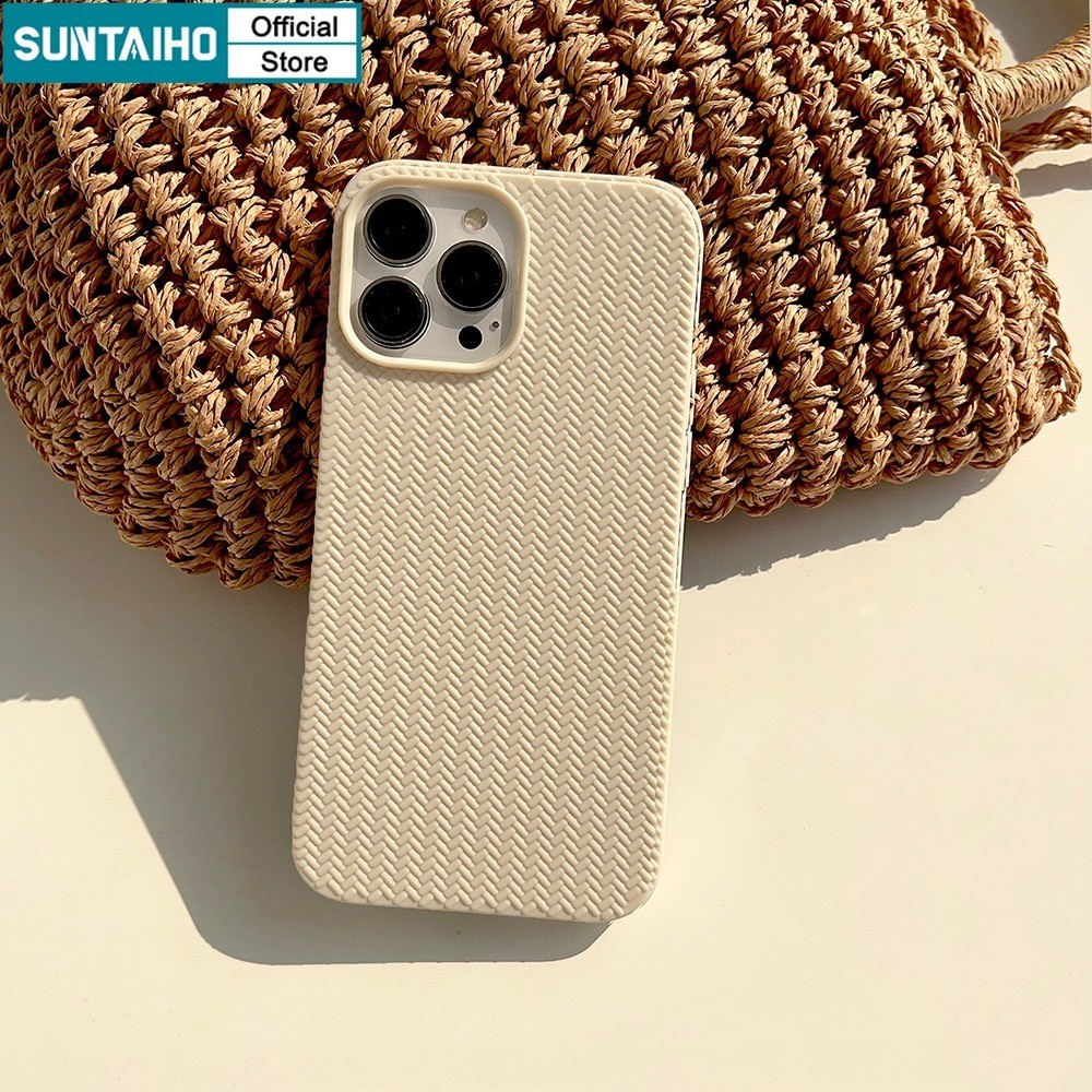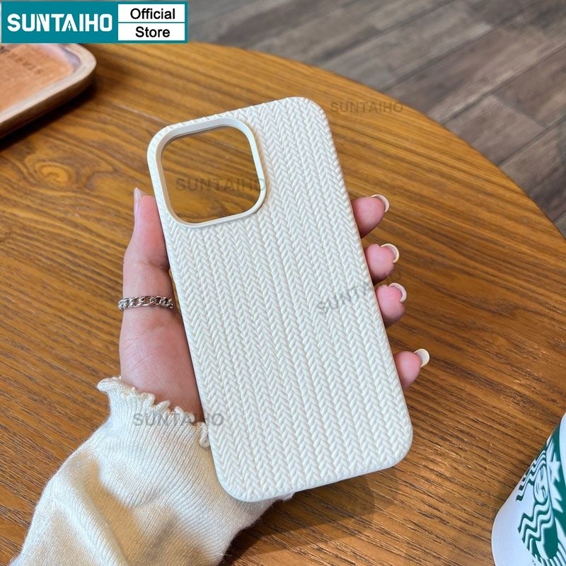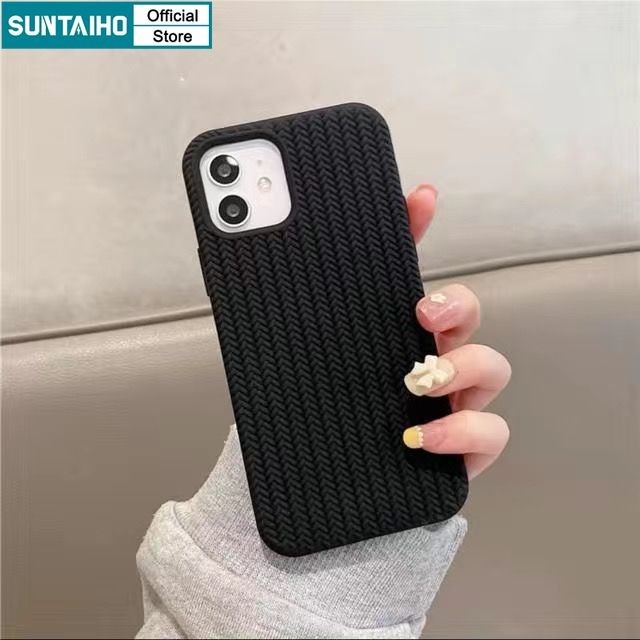 Suntaiho สีดําสีขาวสีทึบแฟชั่นถัก 3D รูปแบบซิลิโคนนุ่มเคสโทรศัพท์สําหรับ Iphone 16 15 14 12 13 11 Pro Max IP 7 8 Plus Iphon X Xs XR Xs Max TPU กันกระแทกปกหลัง