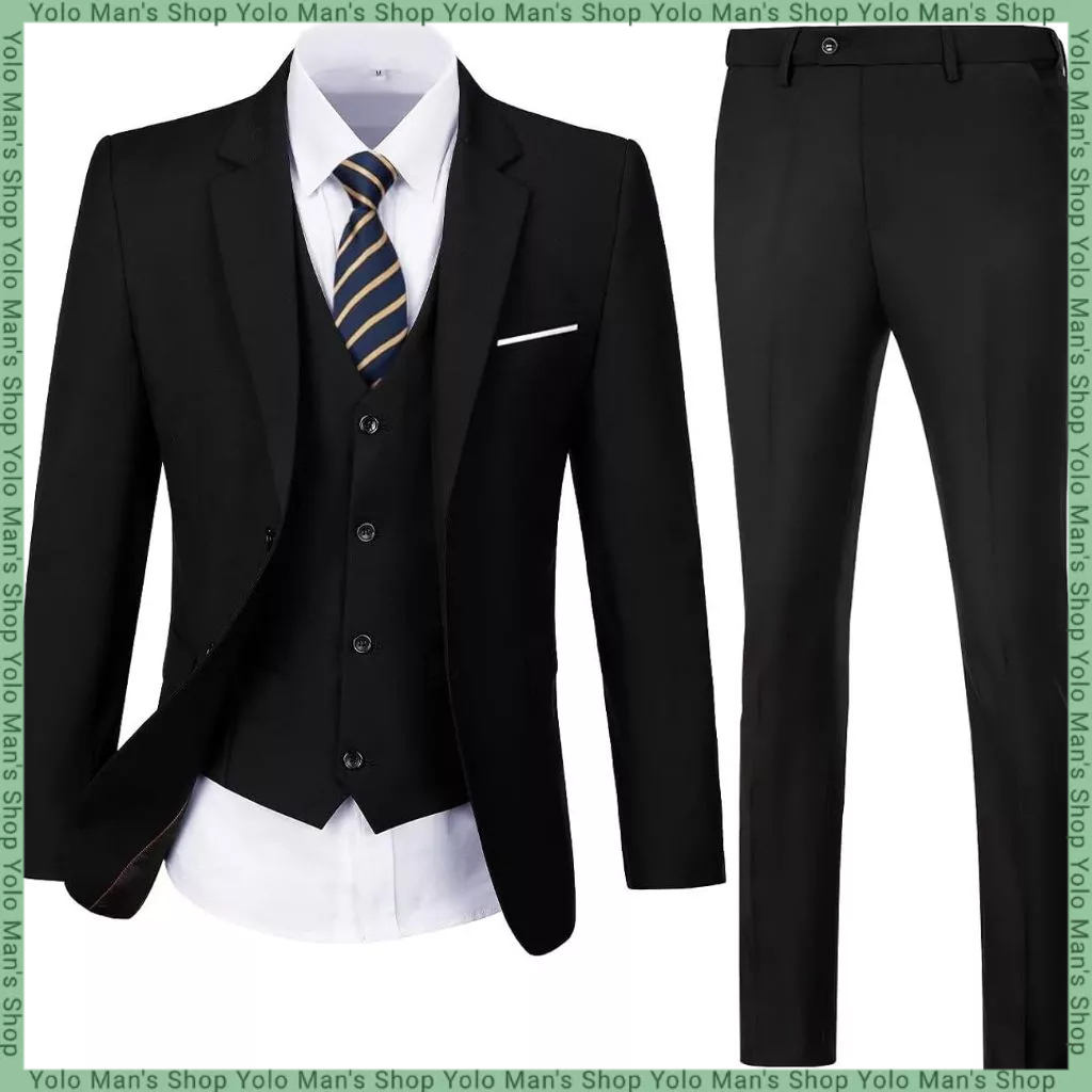 【2 ชิ้น】เสื้อสูทผู้ชาย ชุดสูทผู้ชาย 1 กระดุม ชุดสูทผู้ชาย มีกางเกงเข้าชุด ใส่สบาย ไม่ต้องรีด