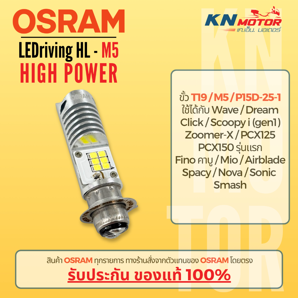 [ของแท้ 100%] Osram T19 (M5) LED แสงสีขาว 6500K รุ่น LEDriving HL ระบบไฟ AC/DC ใส่ได้ทันที Wave / Dream / Click / Mio