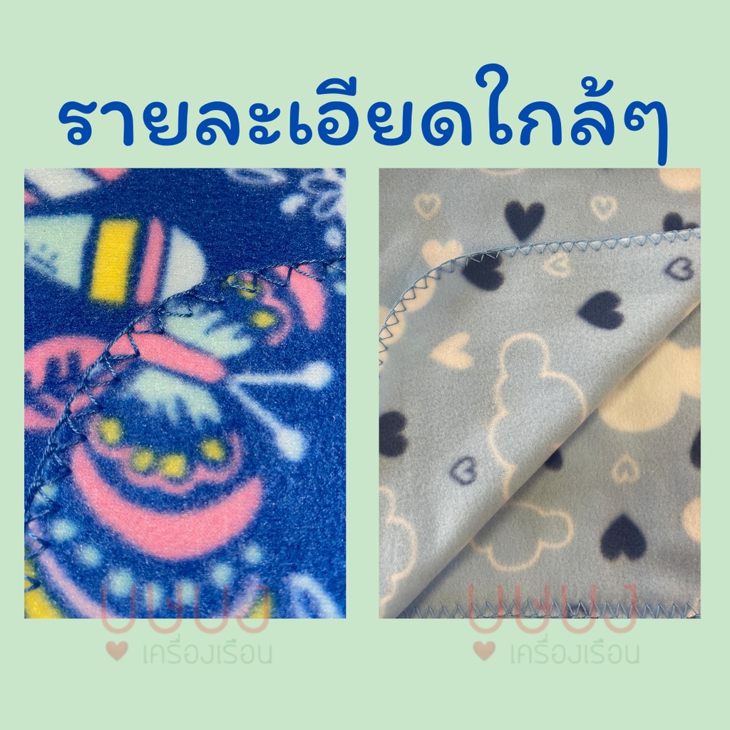 🌈ผ้าห่มฟลีซ เย็บขอบมุมโพ้ง🌈ขนาด127x152 ผืนเล็ก พกพา พิมพ์ลายผีเสื้อ รถยนต์ ก้อนเมฆหัวใจ สีสันสดใส ลายไม้เทา
