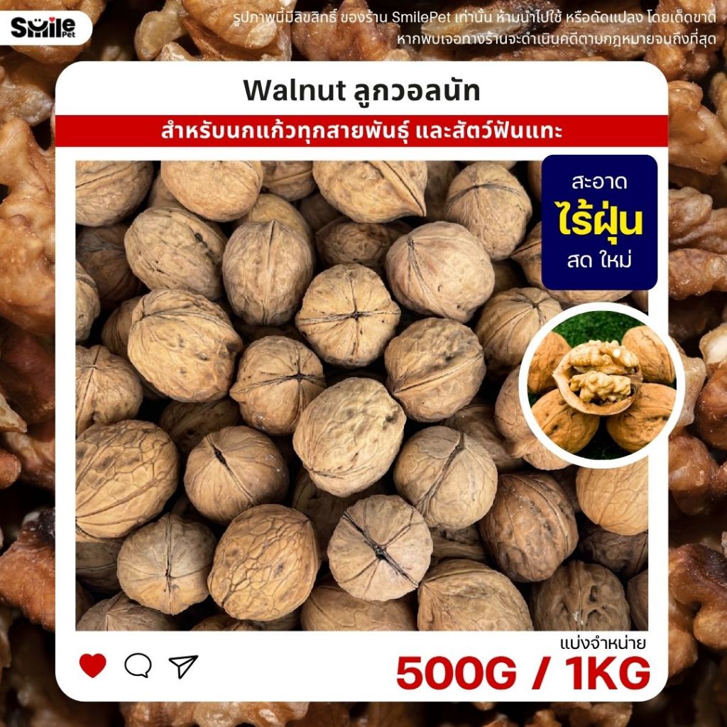 วอลนัท Walnut สำหรับนกแก้ว หนูแฮมสเตอร์ กระรอก แพรี่ด็อก และสัตว์ฟันแทะ (แบ่งขาย 500G / 1KG)
