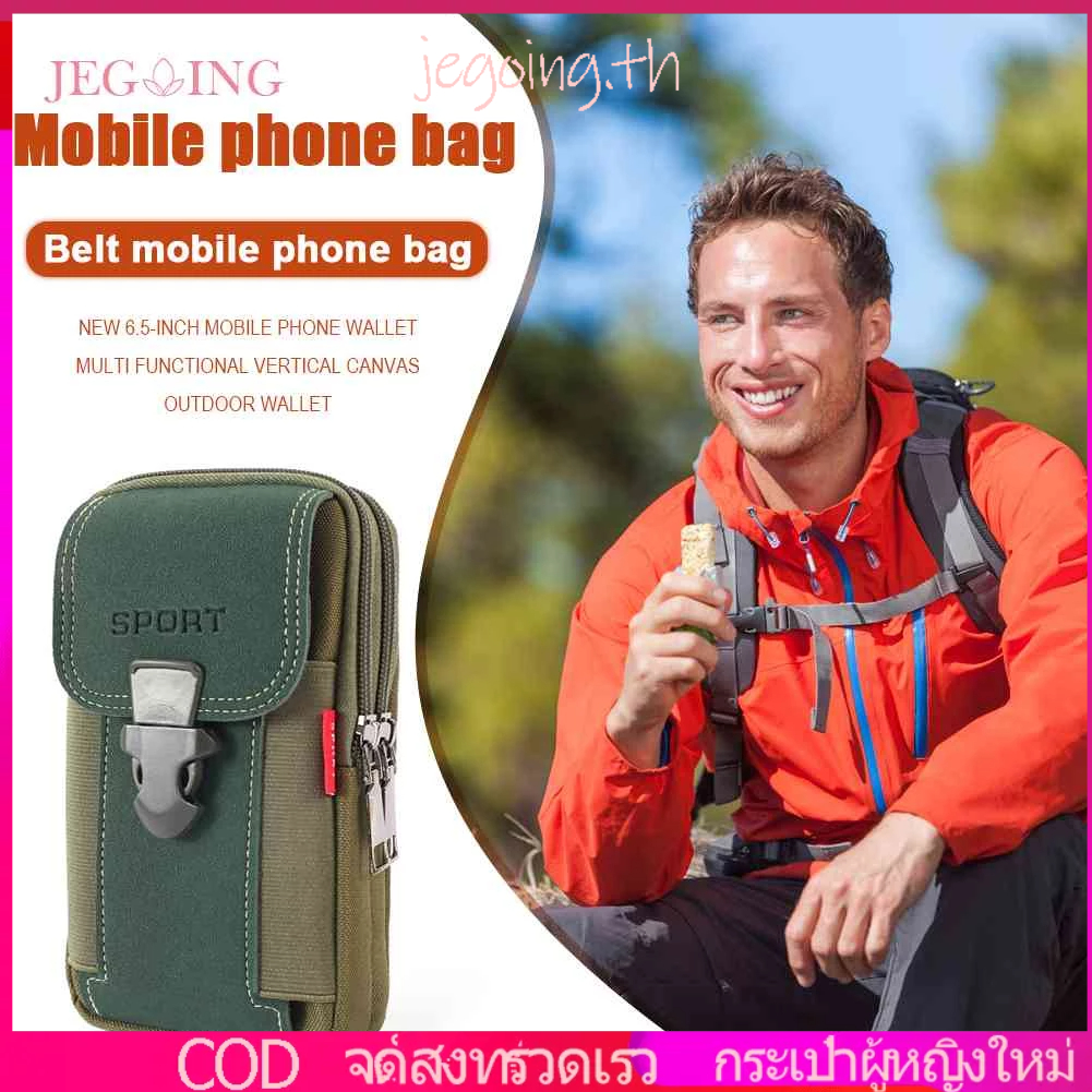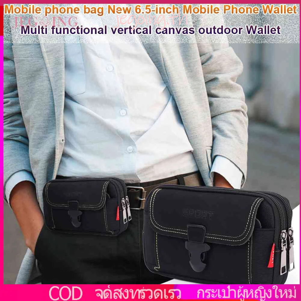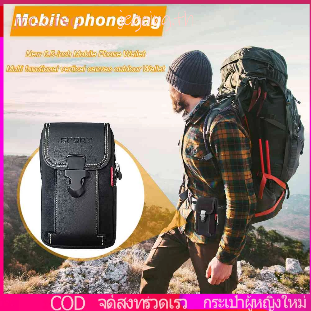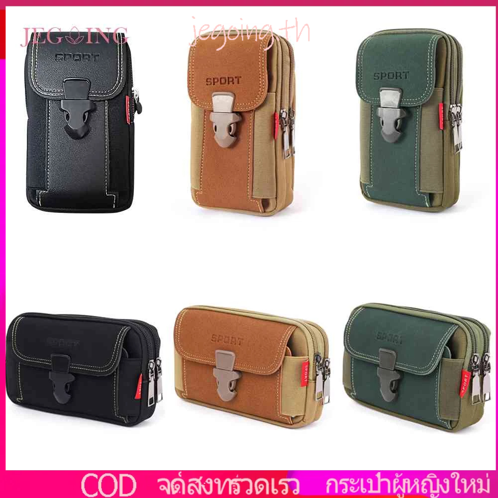 กระเป๋าคาดเอว ผ้าแคนวาส มีซิป ใส่โทรศัพท์ได้ เหมาะกับเล่นกีฬากลางแจ้ง สําหรับผู้ชาย