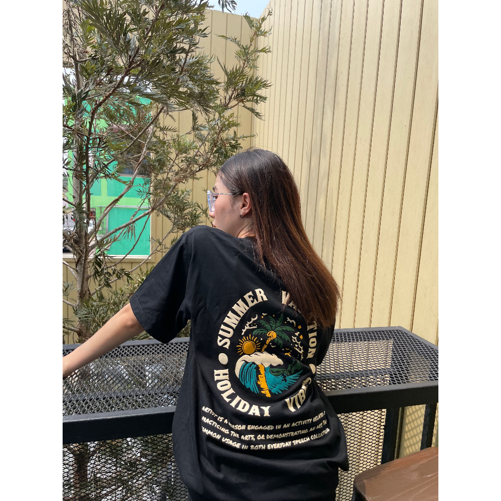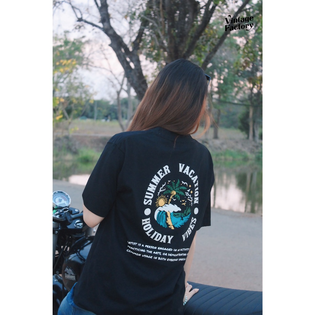 VINTAGE FACTORY เสื้อยืด Cotton100% SUMMER VACATION - เทคนิคซิลค์สกรีน สีจมลงเนื้อผ้าติดแน่นทนนาน