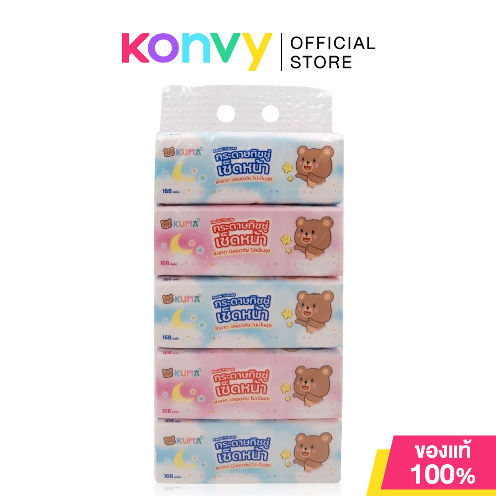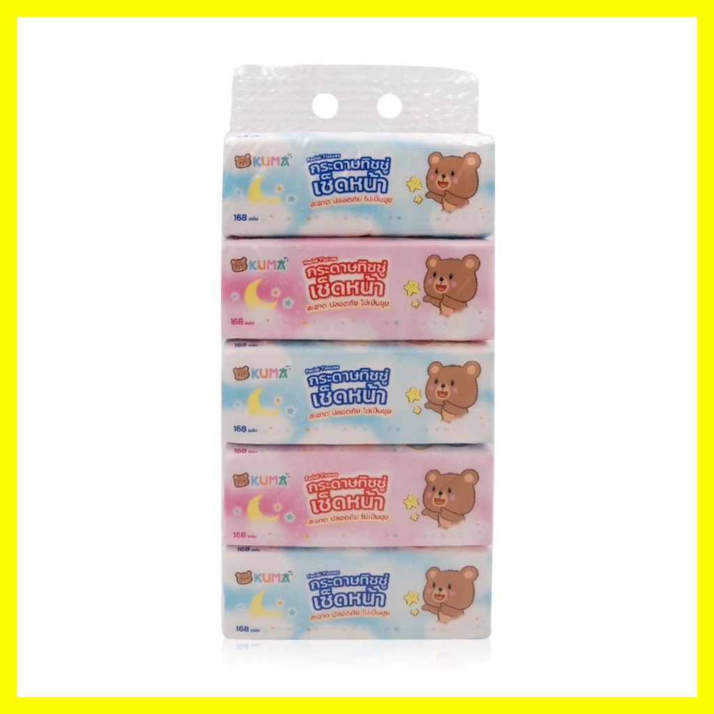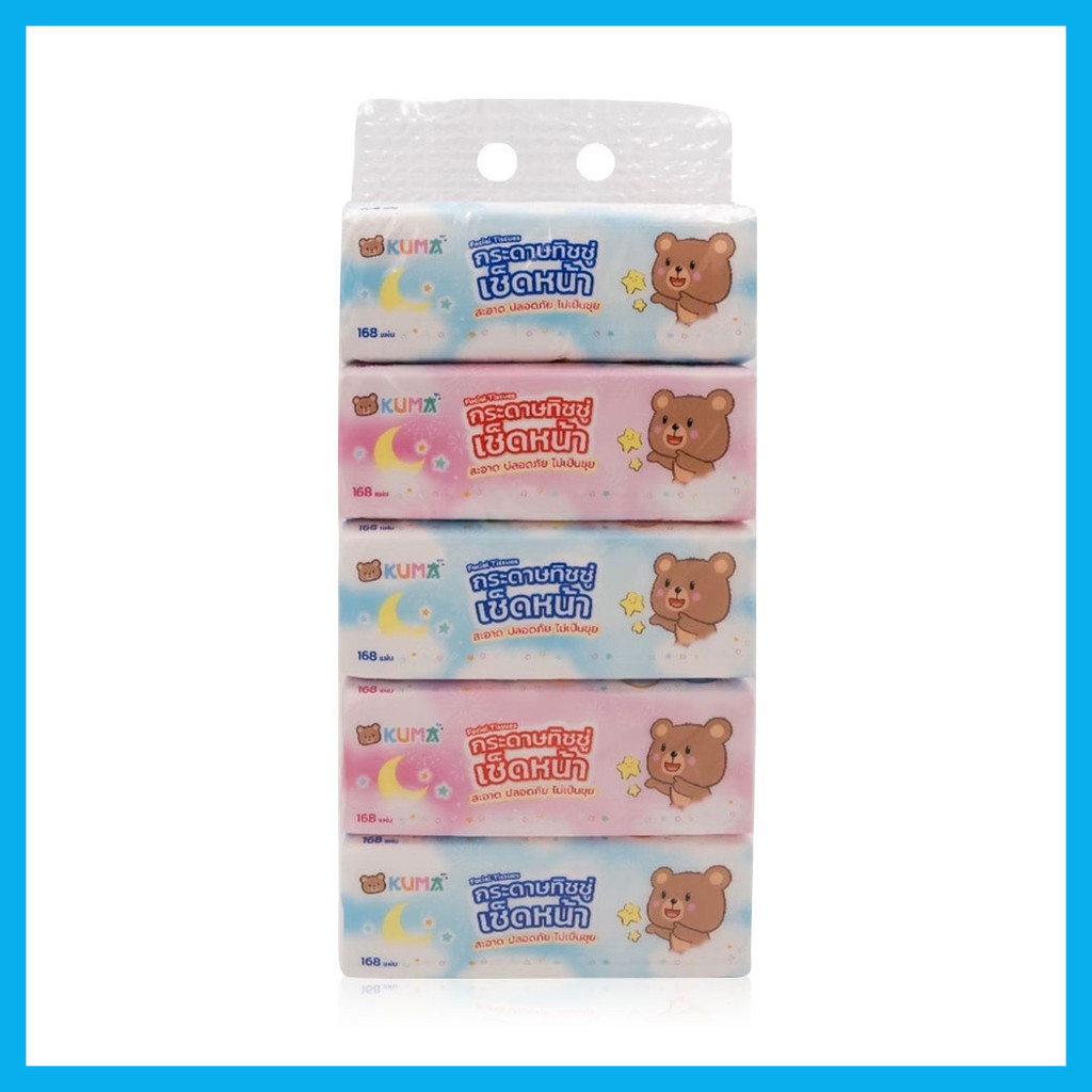 KUMA Facial Tissue [168Sheets x 5pcs] คุมะ กระดาษทิชชู่เช็ดหน้า ขนาดมาตรฐาน.