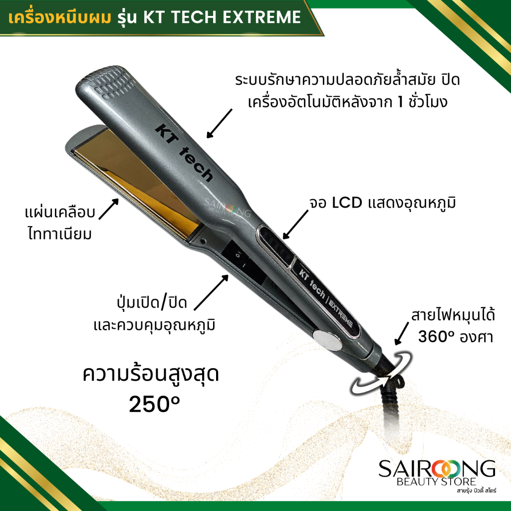 [มีส่งด่วน มีมอก.] เครื่องหนีบผม ไทเทเนียม KT TECH รุ่น KT tech Extreme ความร้อนสูง 250°C (องศา)