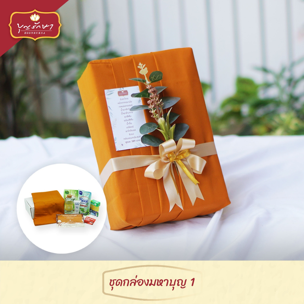 สังฆทานชุดกล่องมหาบุญ 1 by บุญรักษา | ชุดถวายพระ เครื่องไทยธรรม งานบวช งานแต่ง งานศพ งานครบรอบ
