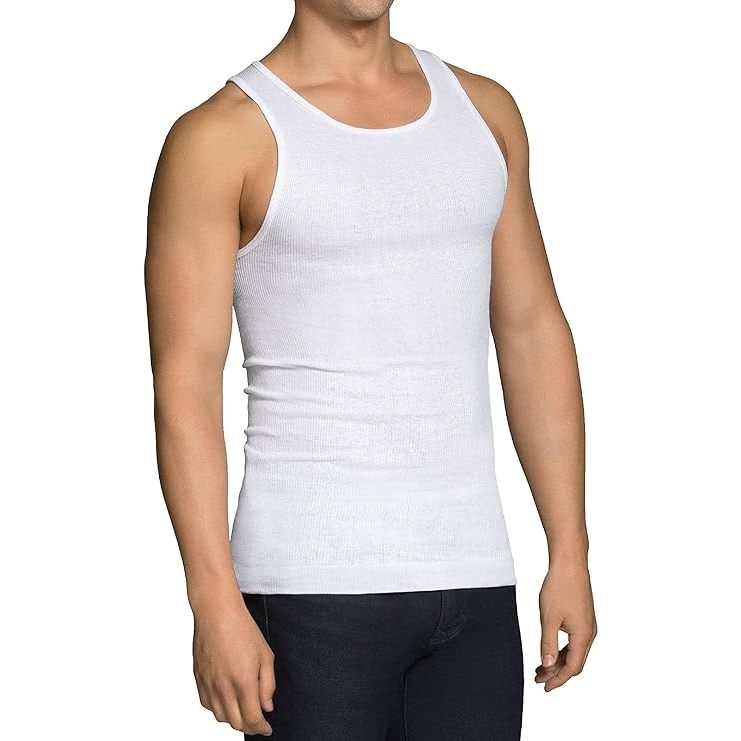 Fruit of the Loom - Men's Tag-Free Tank A-Shirt Classic Fit เสื้อกล้ามแขนกุด สีขาว