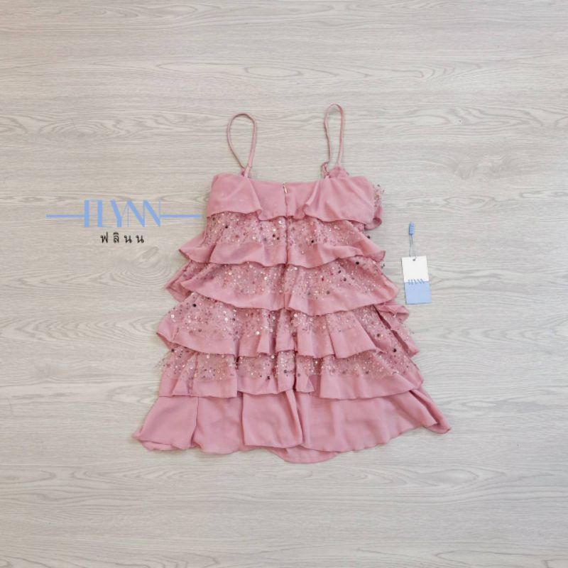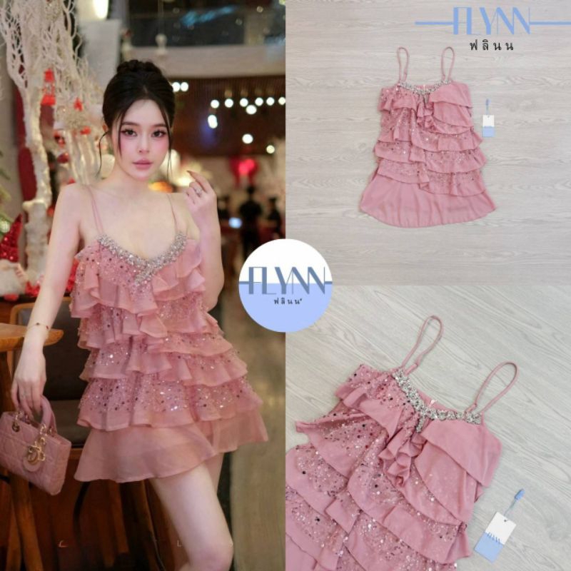 Flynn ชุดเดรสระบายทั้งตัวเสริมผ้าแต่งกริตเตอร์เพิ่มความสวยแพงด้วยช่วงอกแต่งเพชรเม็ดใหญ่