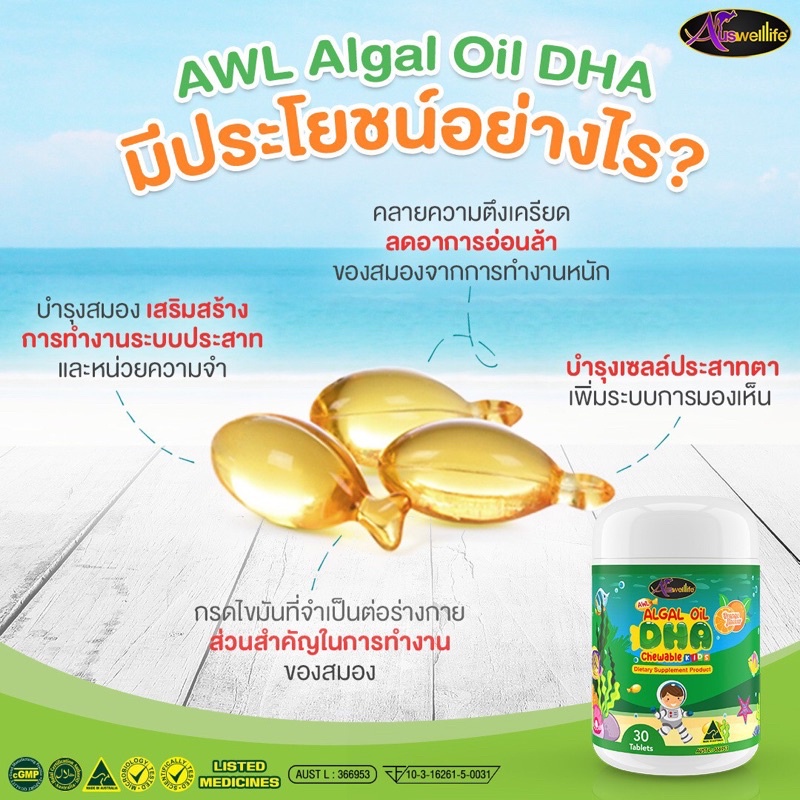 Auswelllif DHA Algal Oil DHA ดีเอชเอ วิตามินเด็ก เสริมภูมิคุ้มกัน อาหารเสริมเด็ก วิตามินบำรุงสมอง