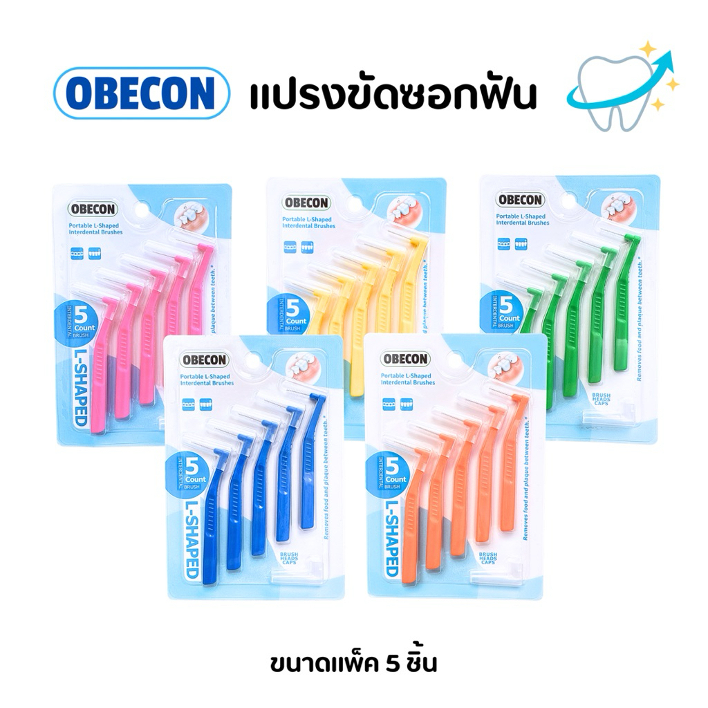 แปรงซอกฟัน OBECON (โอบีคอน) แปรงสำหรับคนจัดฟัน สีเหลือง ขนแปรงนุ่ม 1แพ็ค ขนาด : 0.7 mm มี 5ชิ้น