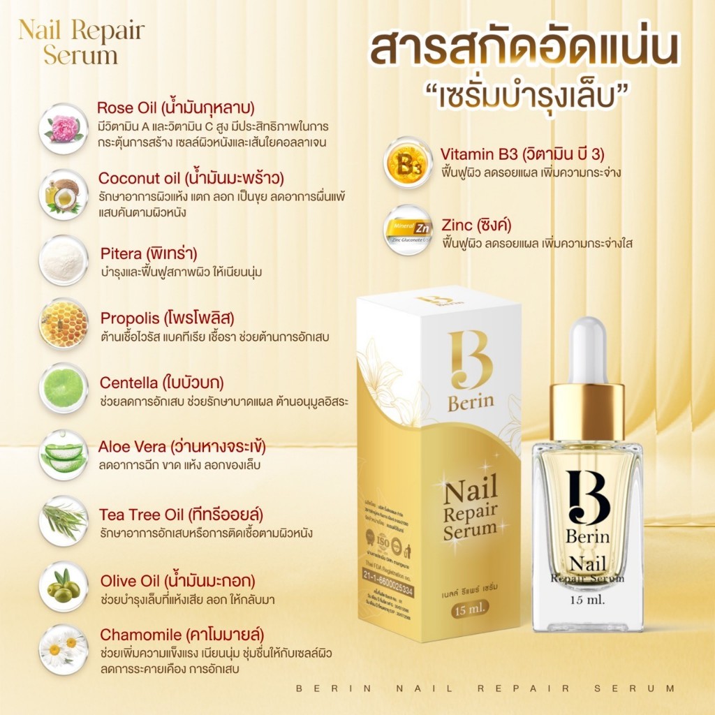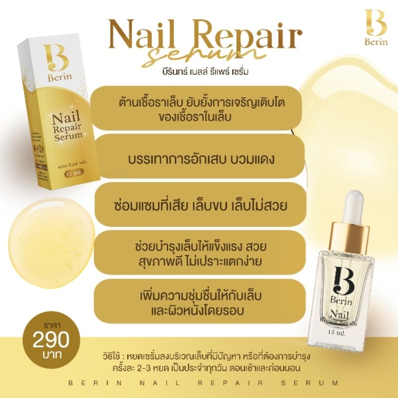 (พร้อมส่ง💛) Berin บีรินทร์ เซรั่มบำรุงเล็บ ซ่อมเล็บเสีย เล็บเชื้อรา เล็บขบ เล็บเปราะบาง ทำให้เล็บสวย แข็งแรง สุขภาพดี