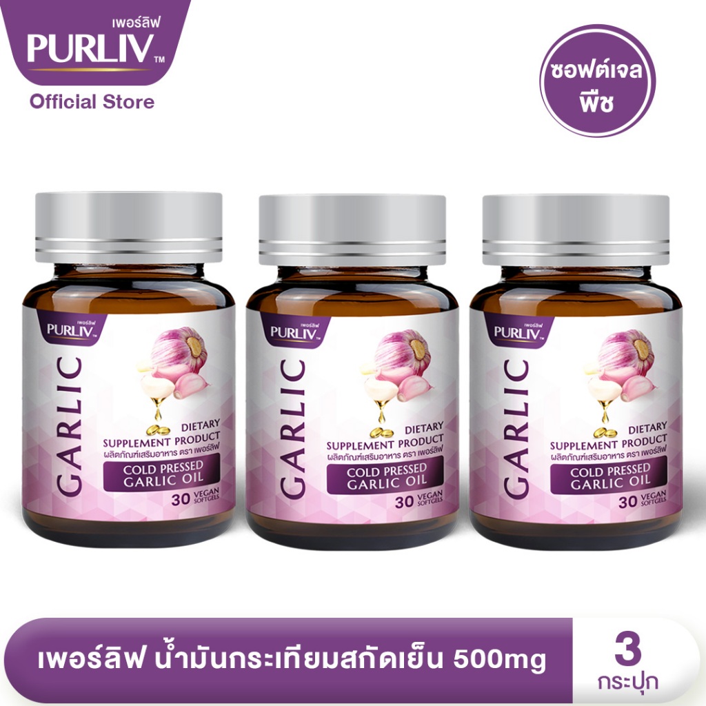 PURLIV Garlic เพอร์ลิฟ น้ำมันกระเทียมสกัดเย็น 3 กระปุก ลดคอเลสเตอรอล ลดความดัน เพิ่มไขมันดี (กระปุกละ 30 แคปซูล)