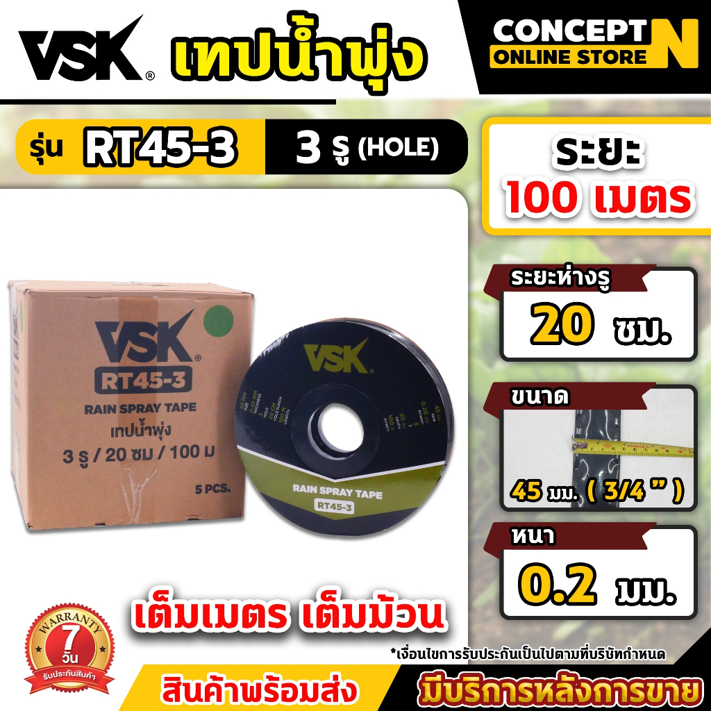 เทปน้ำพุ่ง VSK RT45 (3/4")ขนาด45มม. ความหนา0.20มม. ความยาว100เมตร เทปรดน้ำพืชผัก สายน้ำพุ่ง. 2รู 3รู 5รู ประกัน 7 วัน